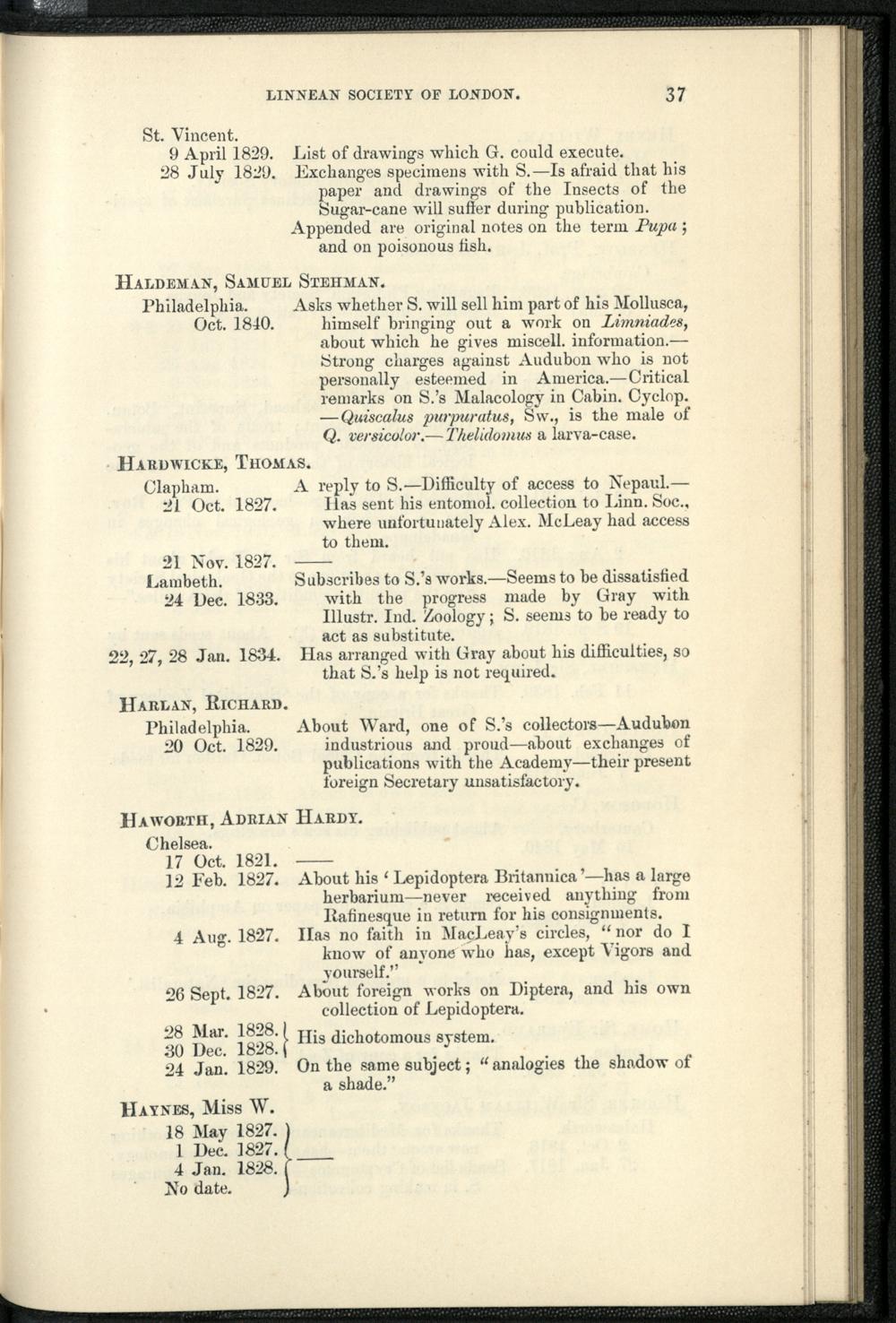 Catalogue of the Swainson corrrespondence in the possession of the Linnean Socie...