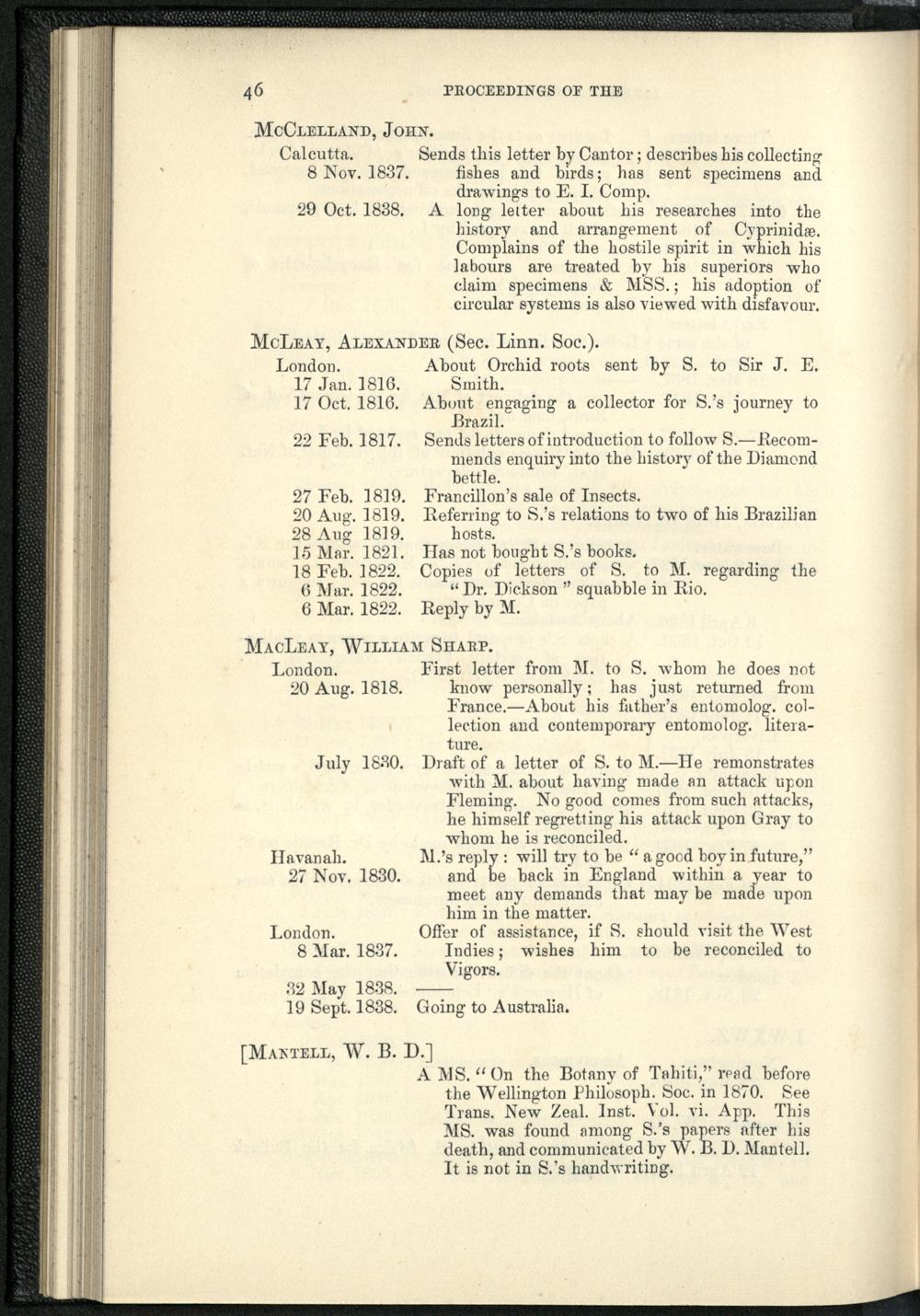 Catalogue of the Swainson corrrespondence in the possession of the Linnean Socie...