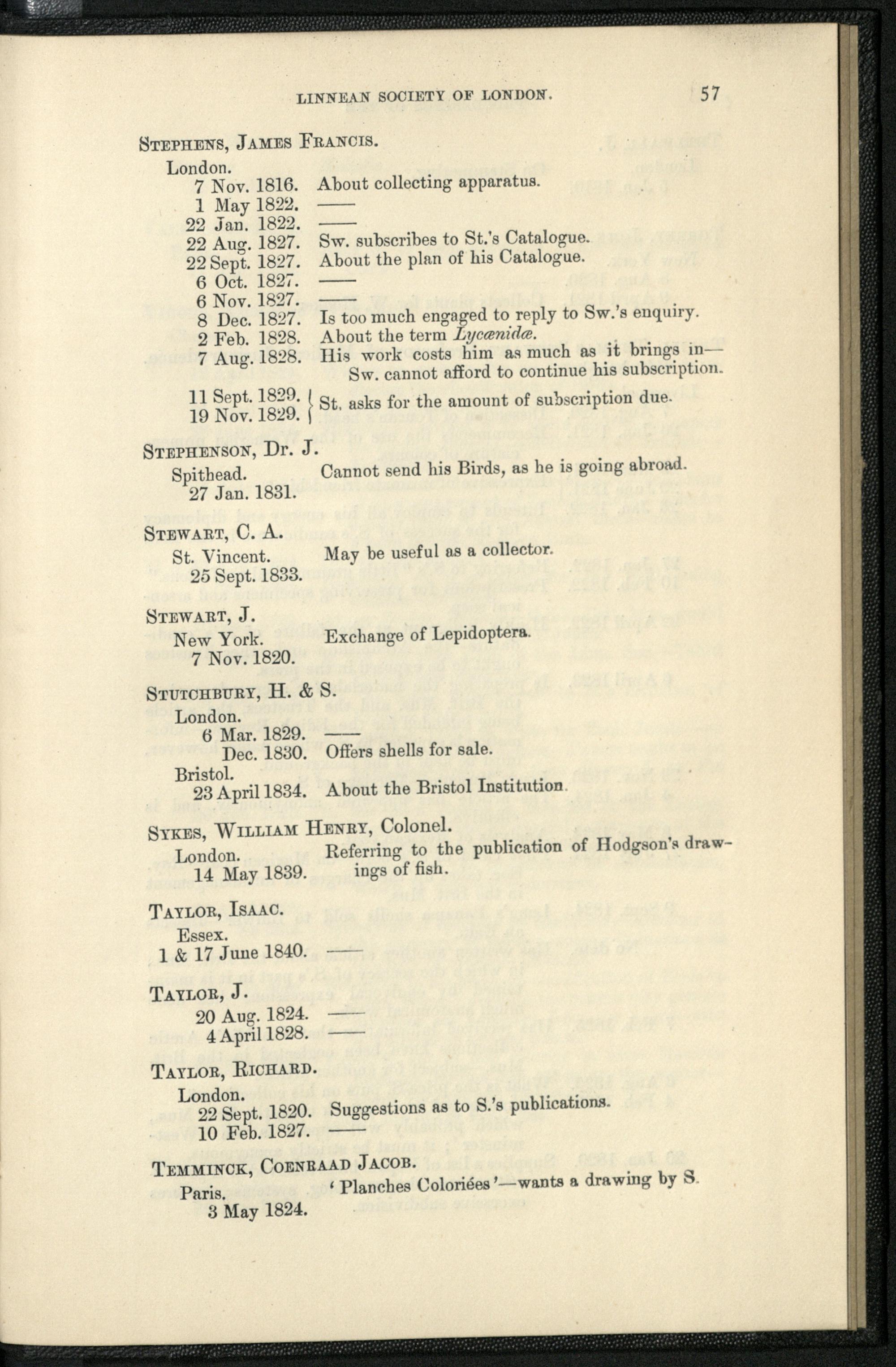 Catalogue of the Swainson corrrespondence in the possession of the Linnean Socie...