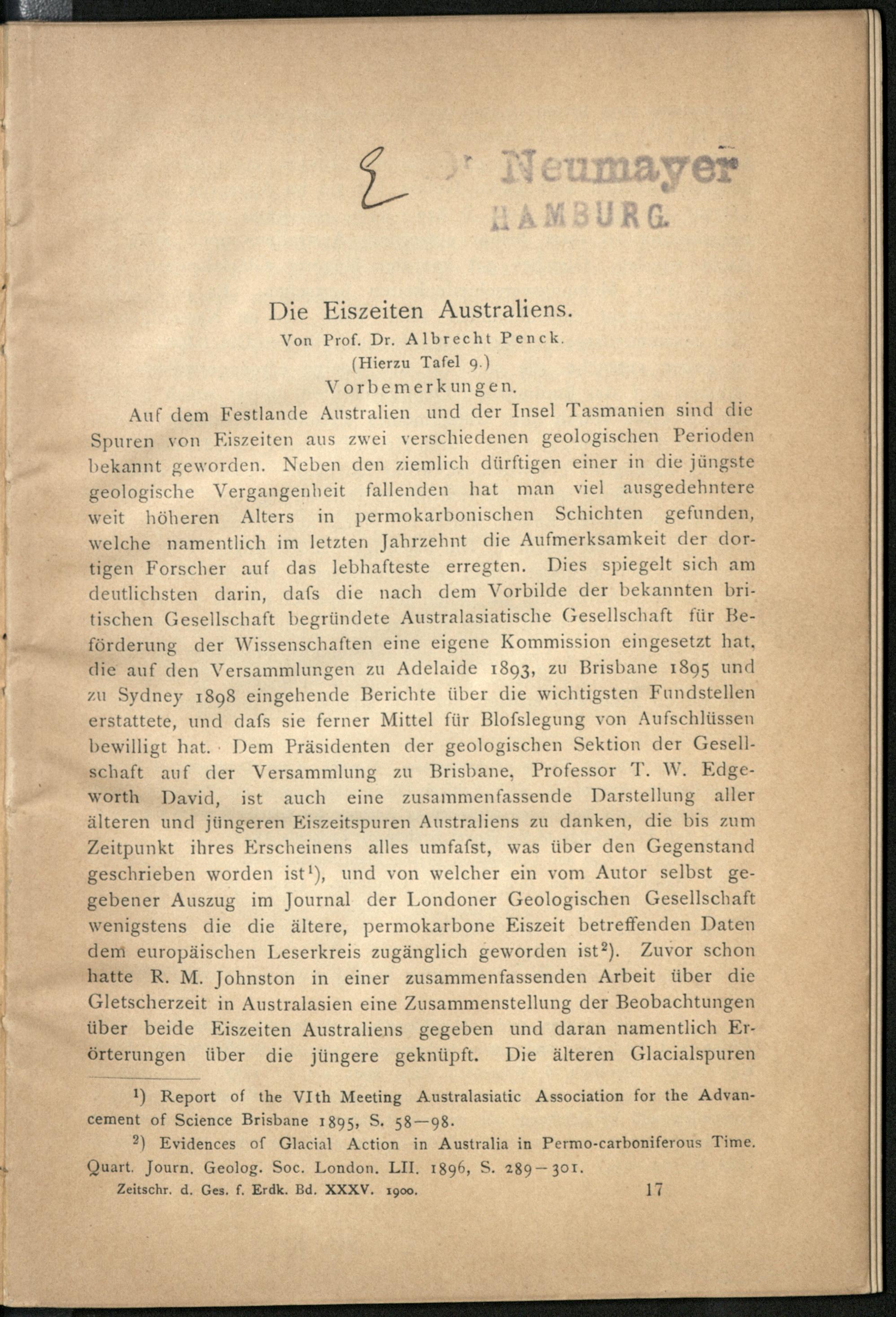 Die Eiszeit Australiens / von Albrecht Penck