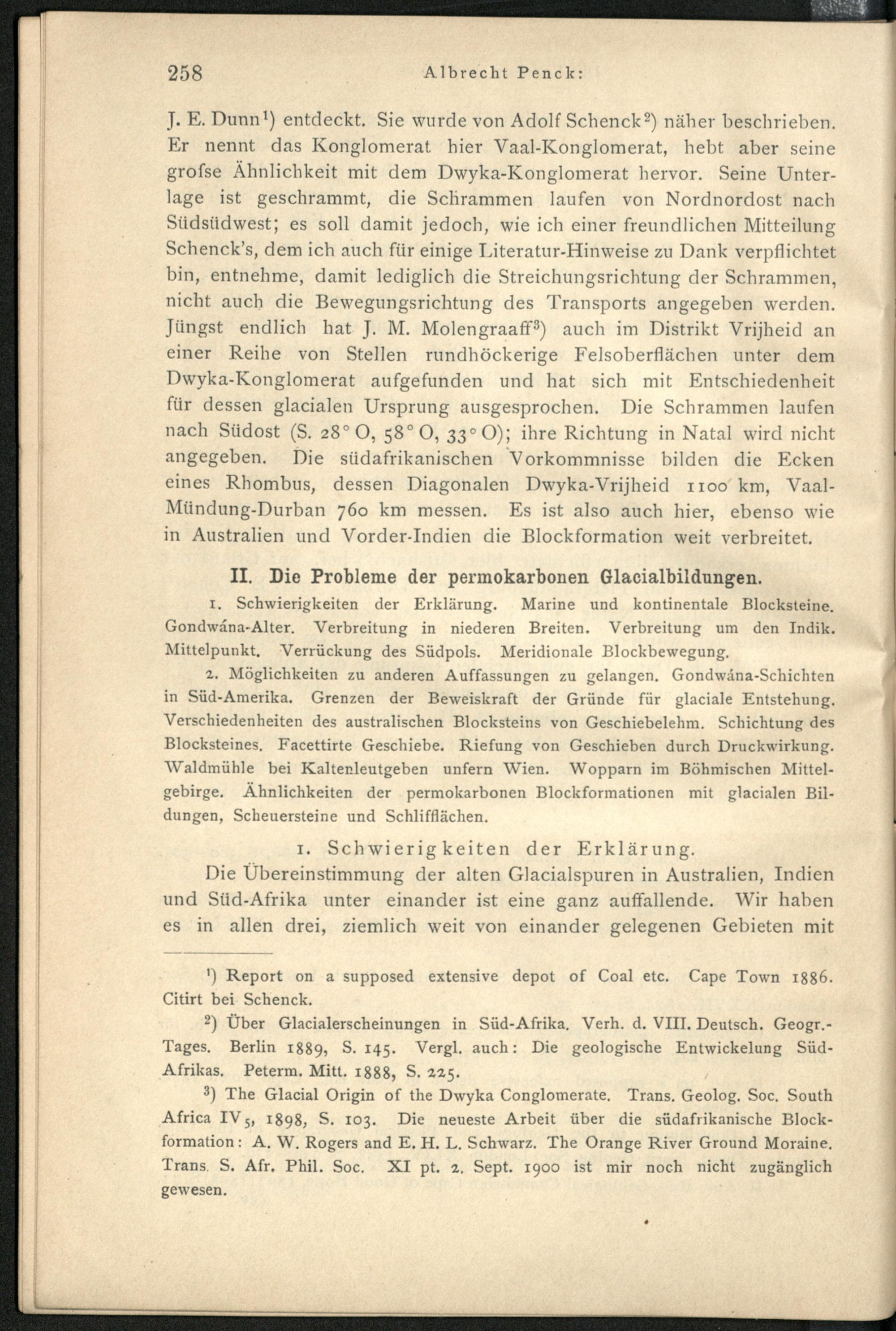 II. Die Probleme der permokarbonen Glacialbildungen.