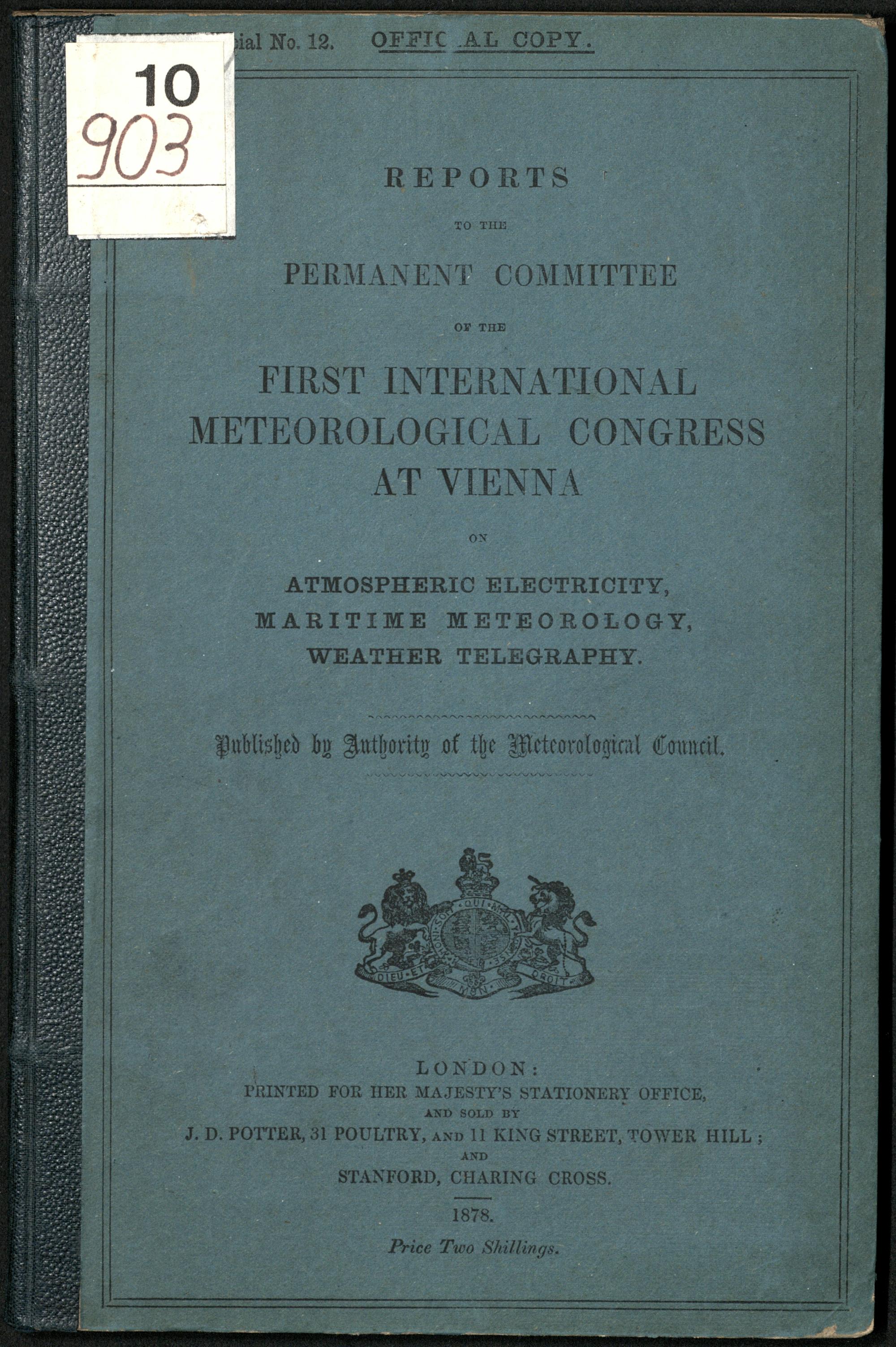 Reports to the permanent committee of the first International Meteorological Congress at Vienna on atmospheric electricity, maritime meteorology, weather telegraphy