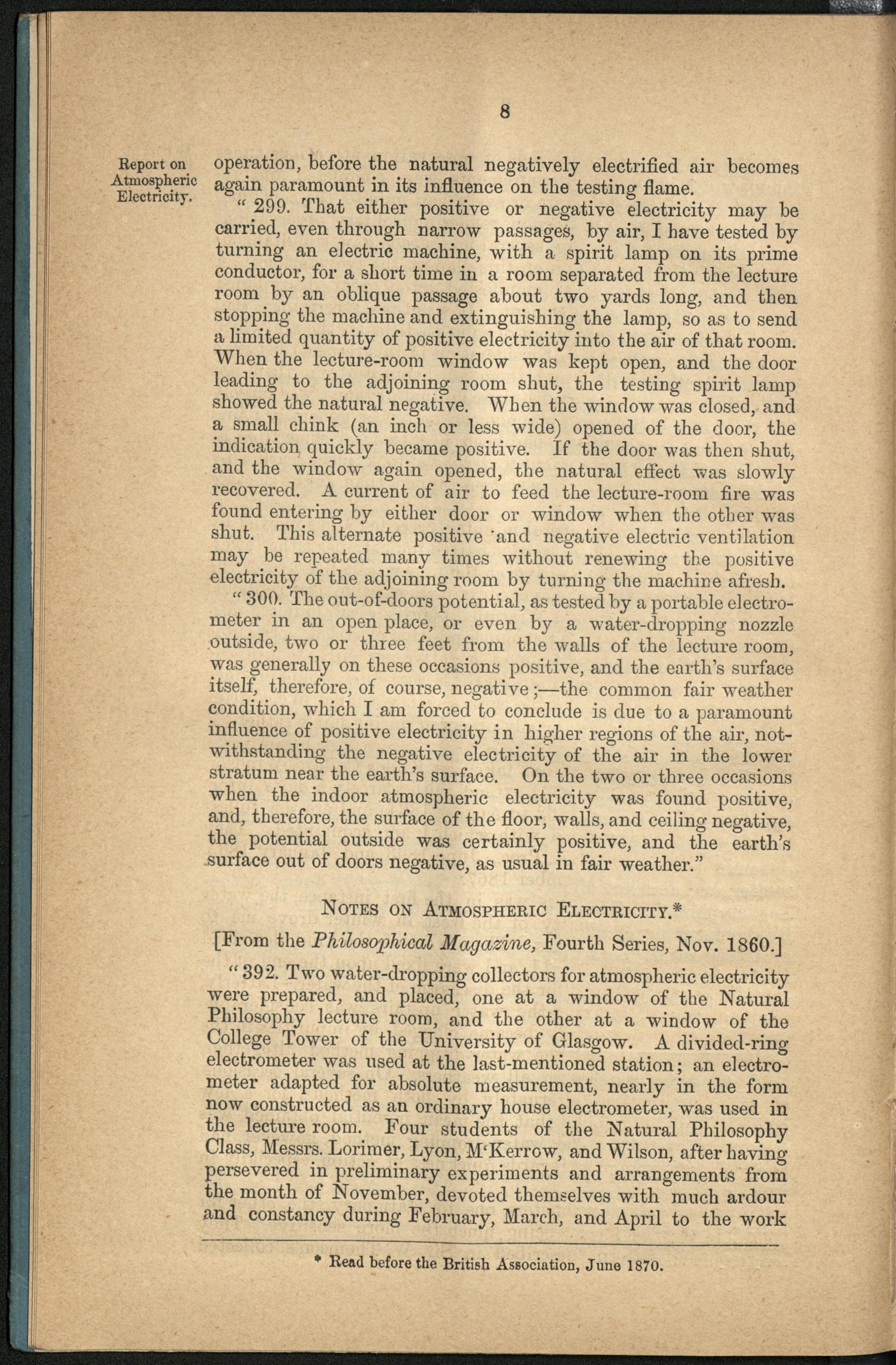 Report on atmospheric electricity.