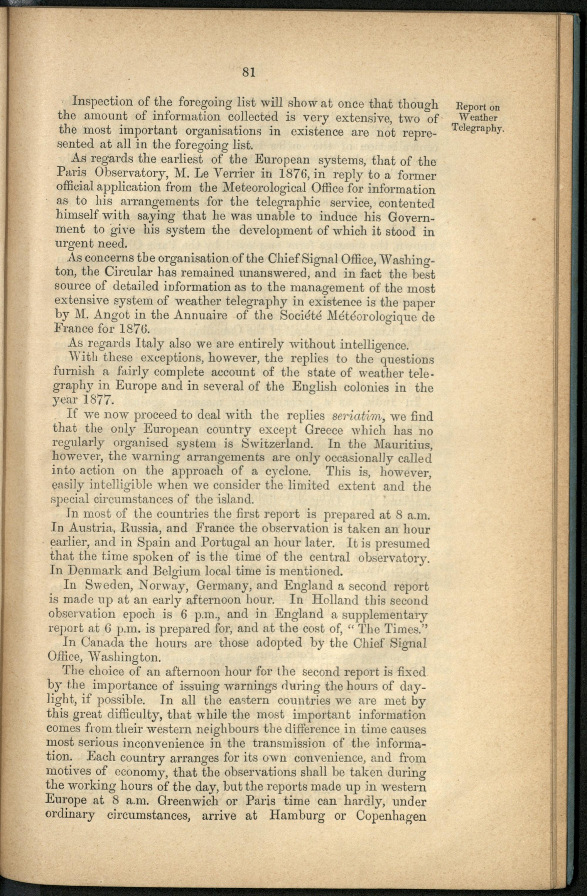 Report on weather telegraphy.