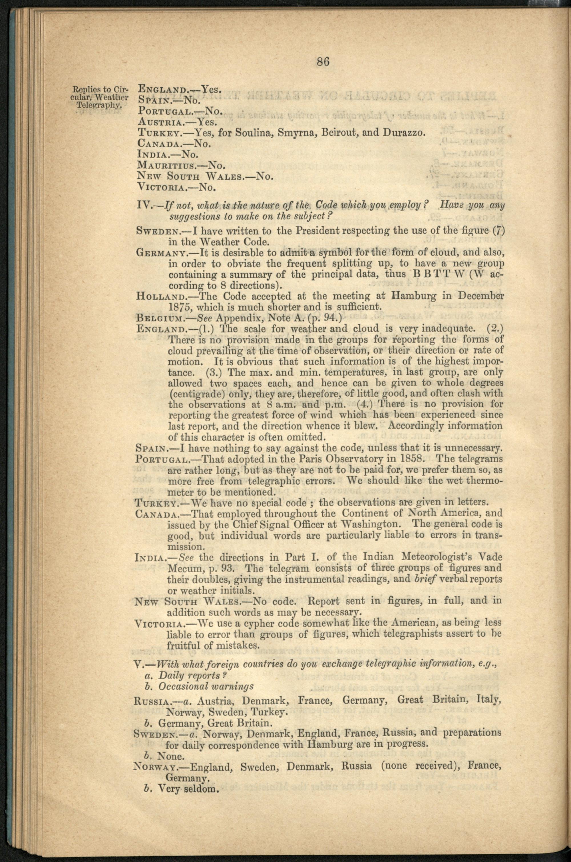 Replies to circular on weather telegraphy.