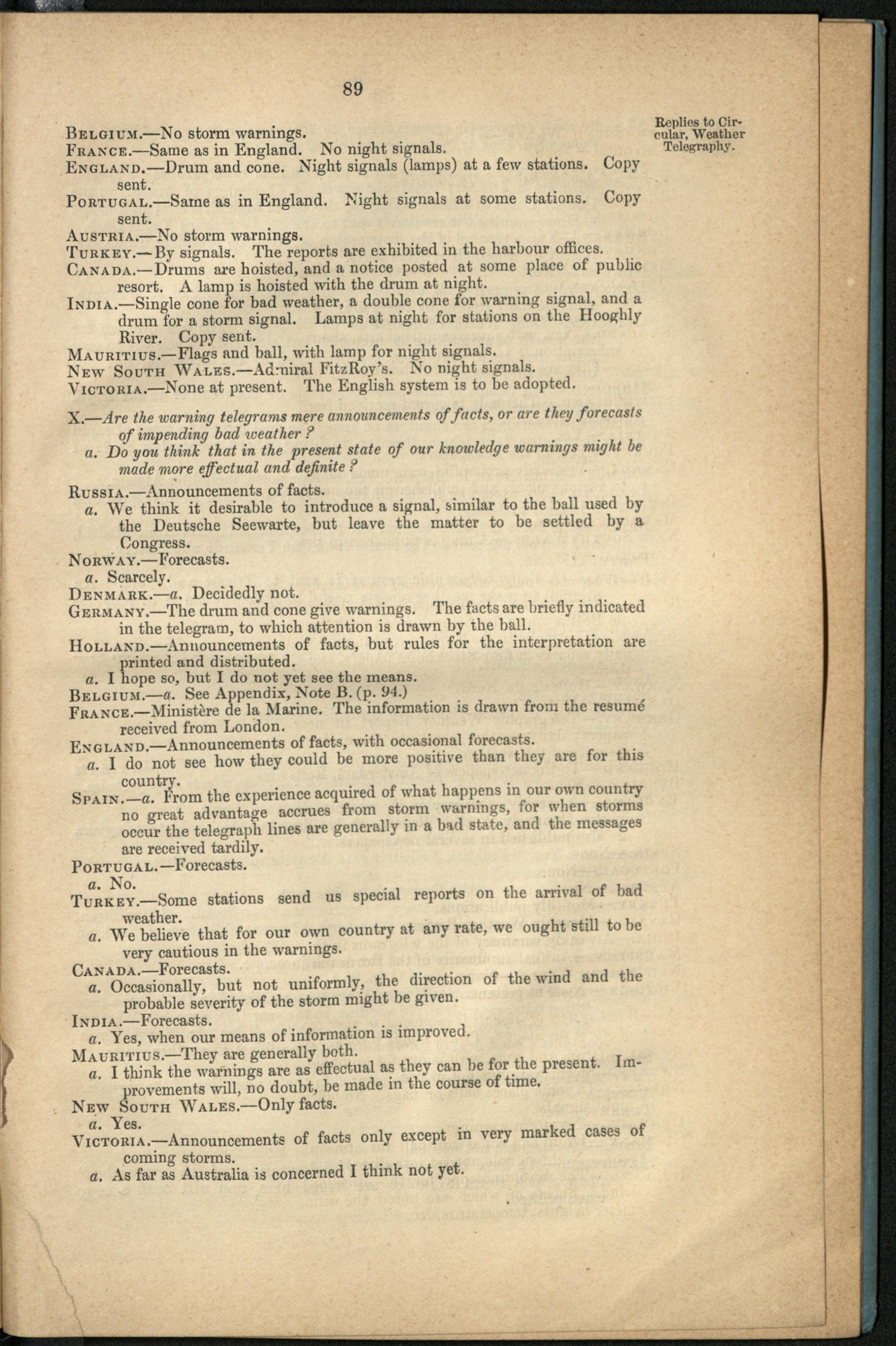 Replies to circular on weather telegraphy.