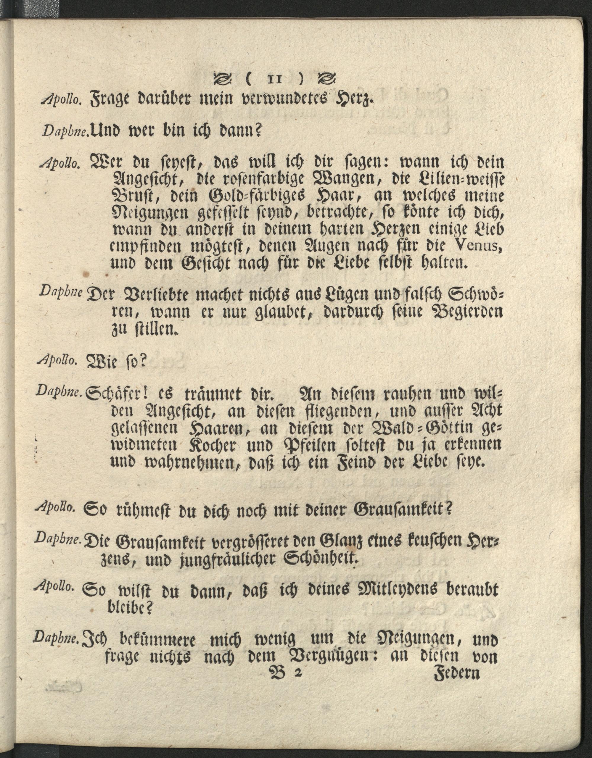 Die // In einen Lorbeer-Baum verwandelte// Daphne : durch ein Sing-Gespräch vorgestellet bey feyerlicher Begehung der höchstbeglückten Buruckkunst des Hochwürdigst-Durchlauchtigsten Fürsten und Herrn, Herrn Clemens Wenceslaus Erzbischofen zu Trier ... ; [Ist zu lesen im Ovid. am I Buch Metamorph. Fab. 13 und 14 ; Die Music ist eine neue Composition des Herrn Conradi Starck, Capellenmeister ] = Dafne transformata in alloro componimento