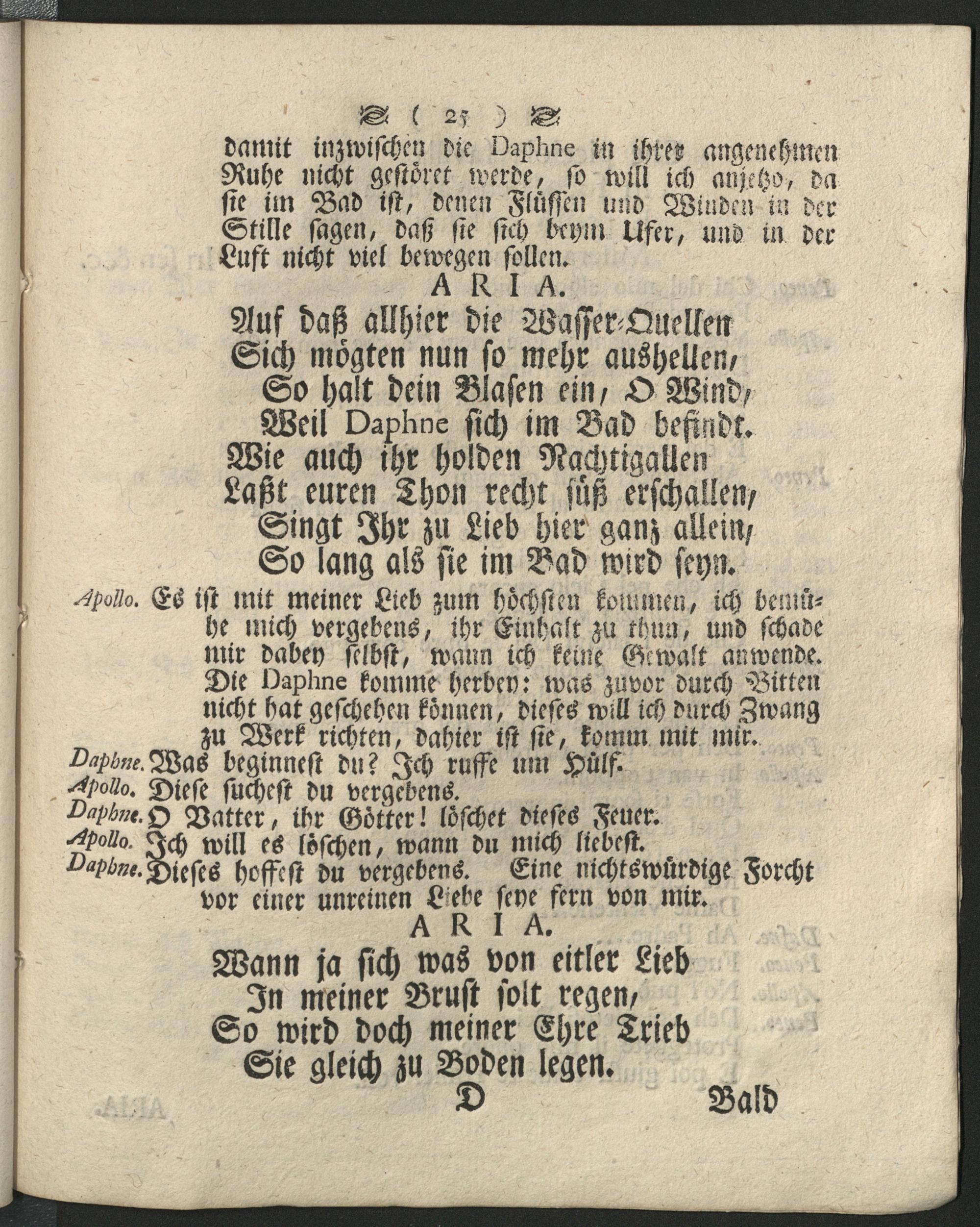 Die // In einen Lorbeer-Baum verwandelte// Daphne : durch ein Sing-Gespräch vorgestellet bey feyerlicher Begehung der höchstbeglückten Buruckkunst des Hochwürdigst-Durchlauchtigsten Fürsten und Herrn, Herrn Clemens Wenceslaus Erzbischofen zu Trier ... ; [Ist zu lesen im Ovid. am I Buch Metamorph. Fab. 13 und 14 ; Die Music ist eine neue Composition des Herrn Conradi Starck, Capellenmeister ] = Dafne transformata in alloro componimento
