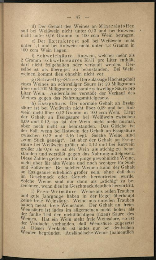 13. Beurteilung des Weines aufgrund der chemischen Analyse.