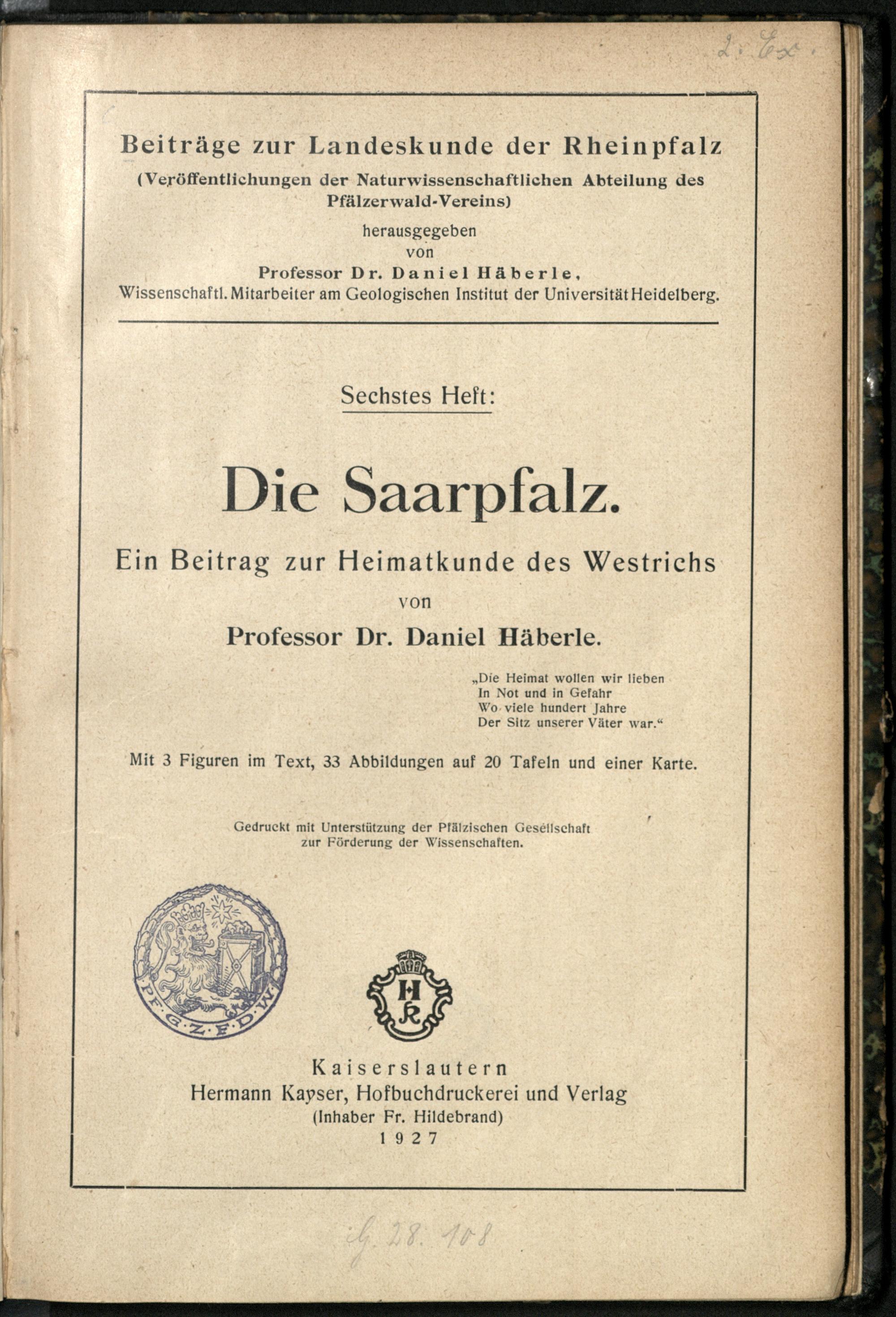 Die Saarpfalz : ein Beitrag zur Heimatkunde des Westrichs / von Daniel Häberle