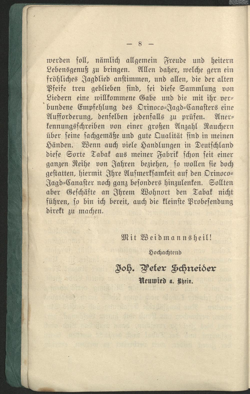 Es ist nicht der Zweck, mit dieser Auswahl alter und neuer Lieder nur alten und jungen Weidmännern eine Freude zu machen.