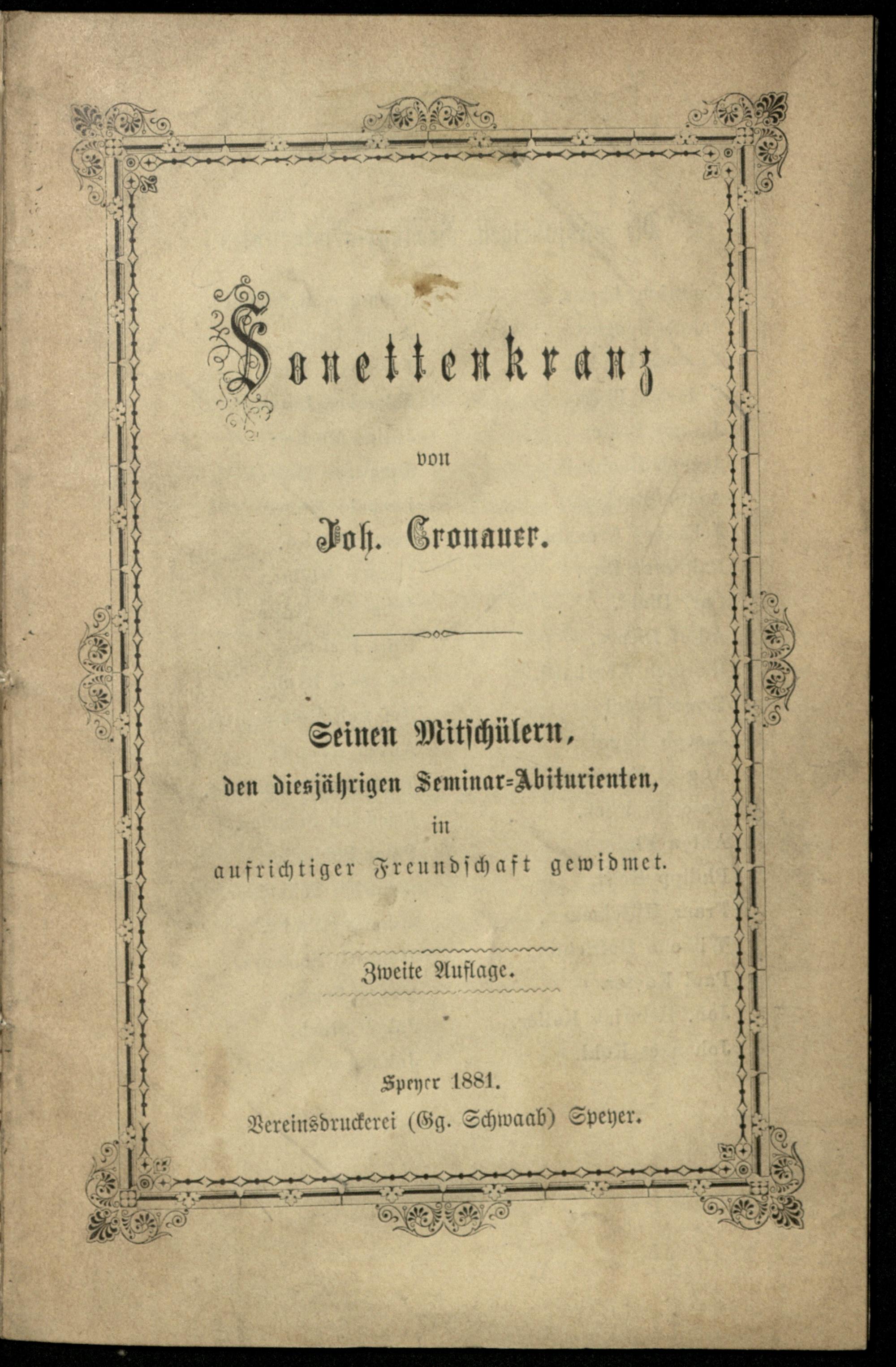 Sonettenkranz / Joh. Cronauer