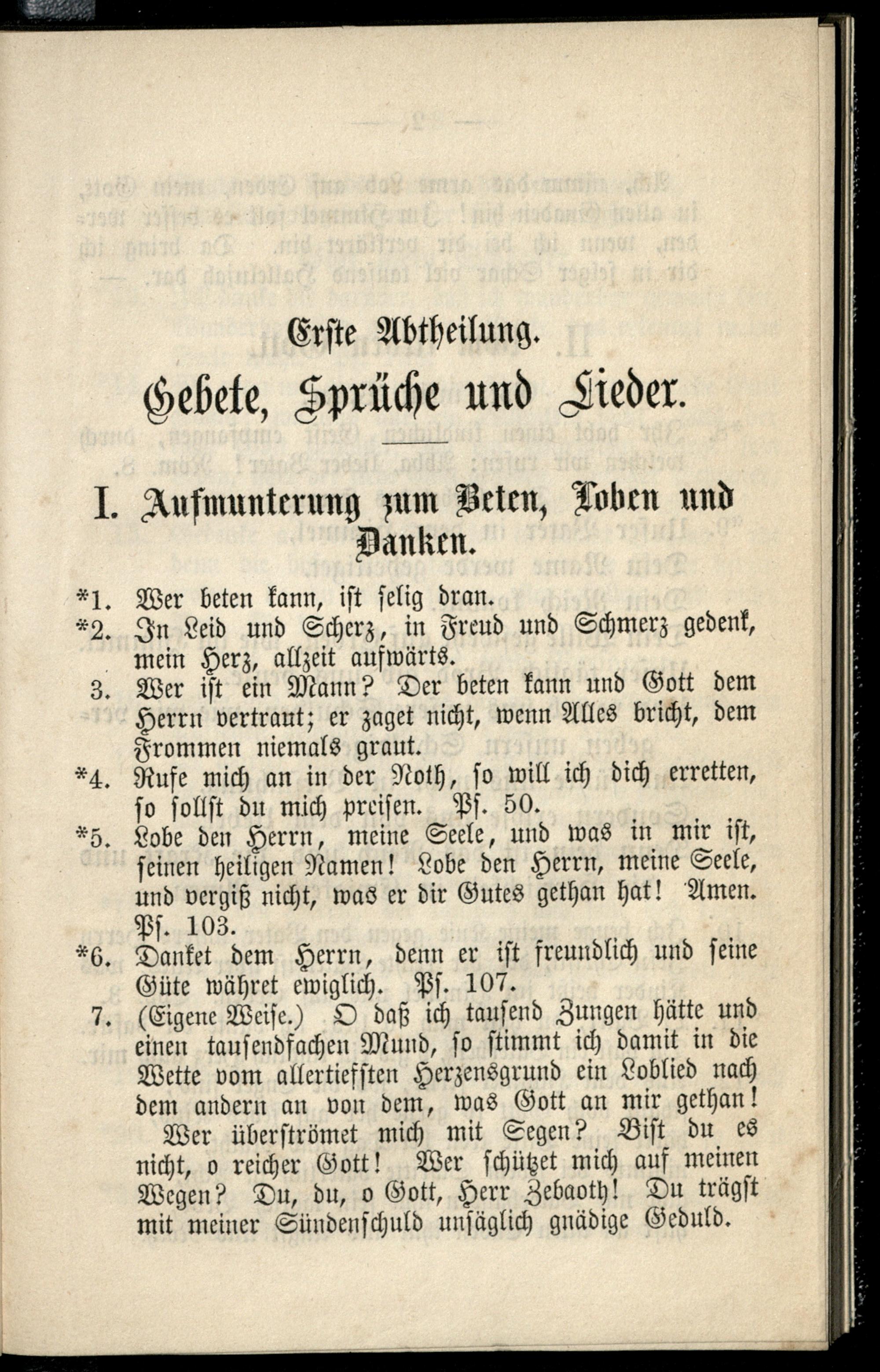 Erste Abtheilung. Gebete, Sprüche und Lieder.