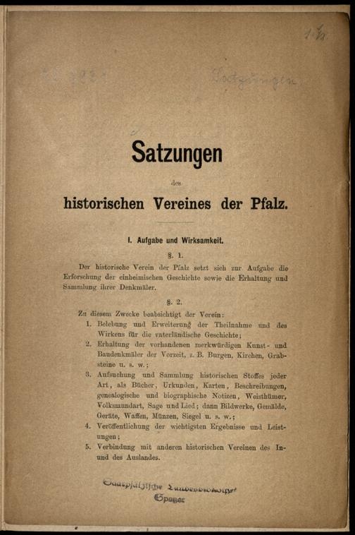 Satzungen des historischen Vereines der Pfalz