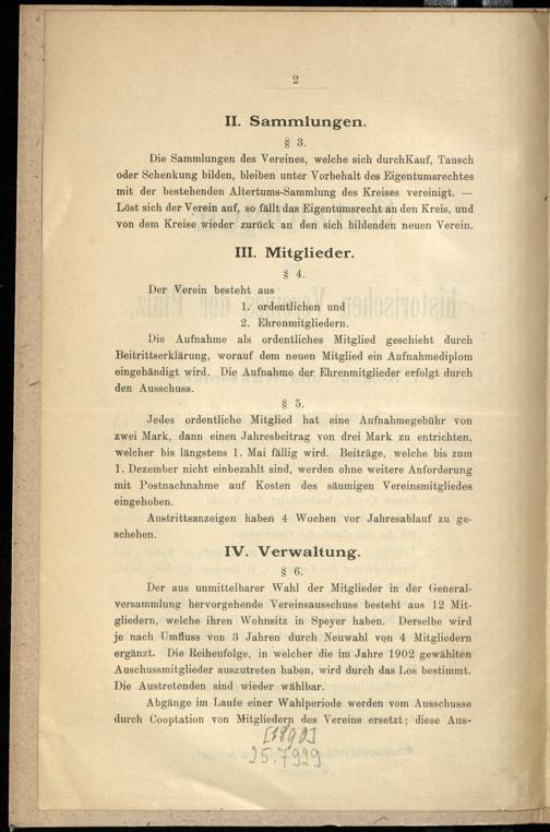 Satzungen des historischen Vereines der Pfalz