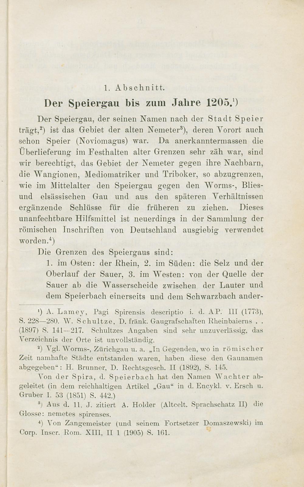 1. Abschnitt. Der Speiergau bis zum Jahre 1205.