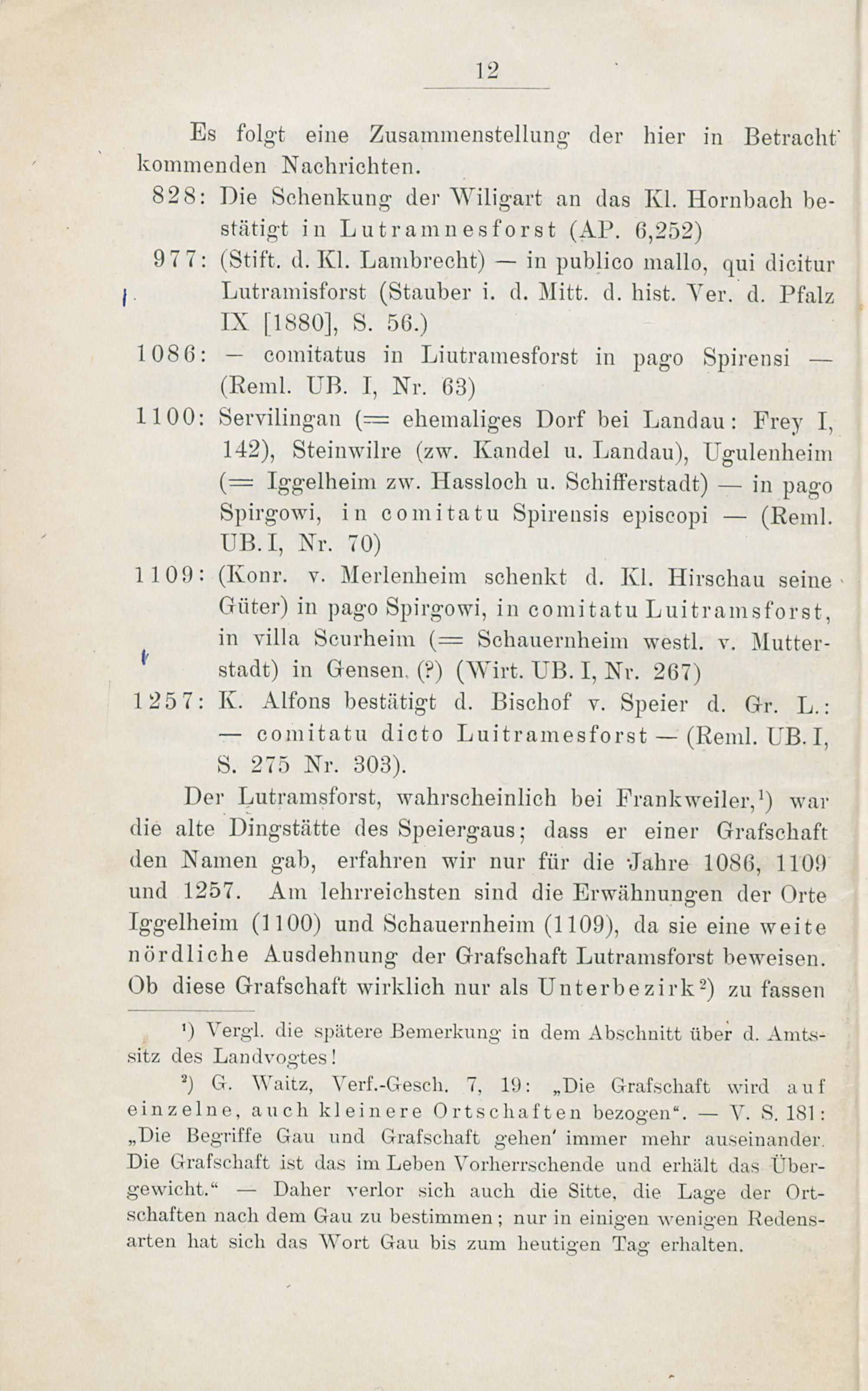 1. Abschnitt. Der Speiergau bis zum Jahre 1205.