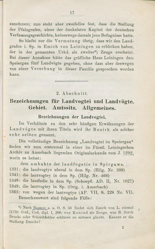 1. Abschnitt. Der Speiergau bis zum Jahre 1205.