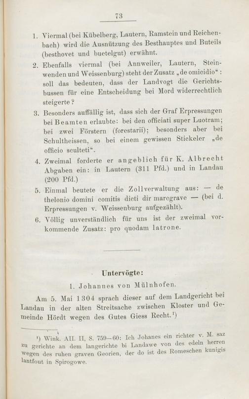 Die Landvogtei im Speiergau / von Hermann Schreibmüller