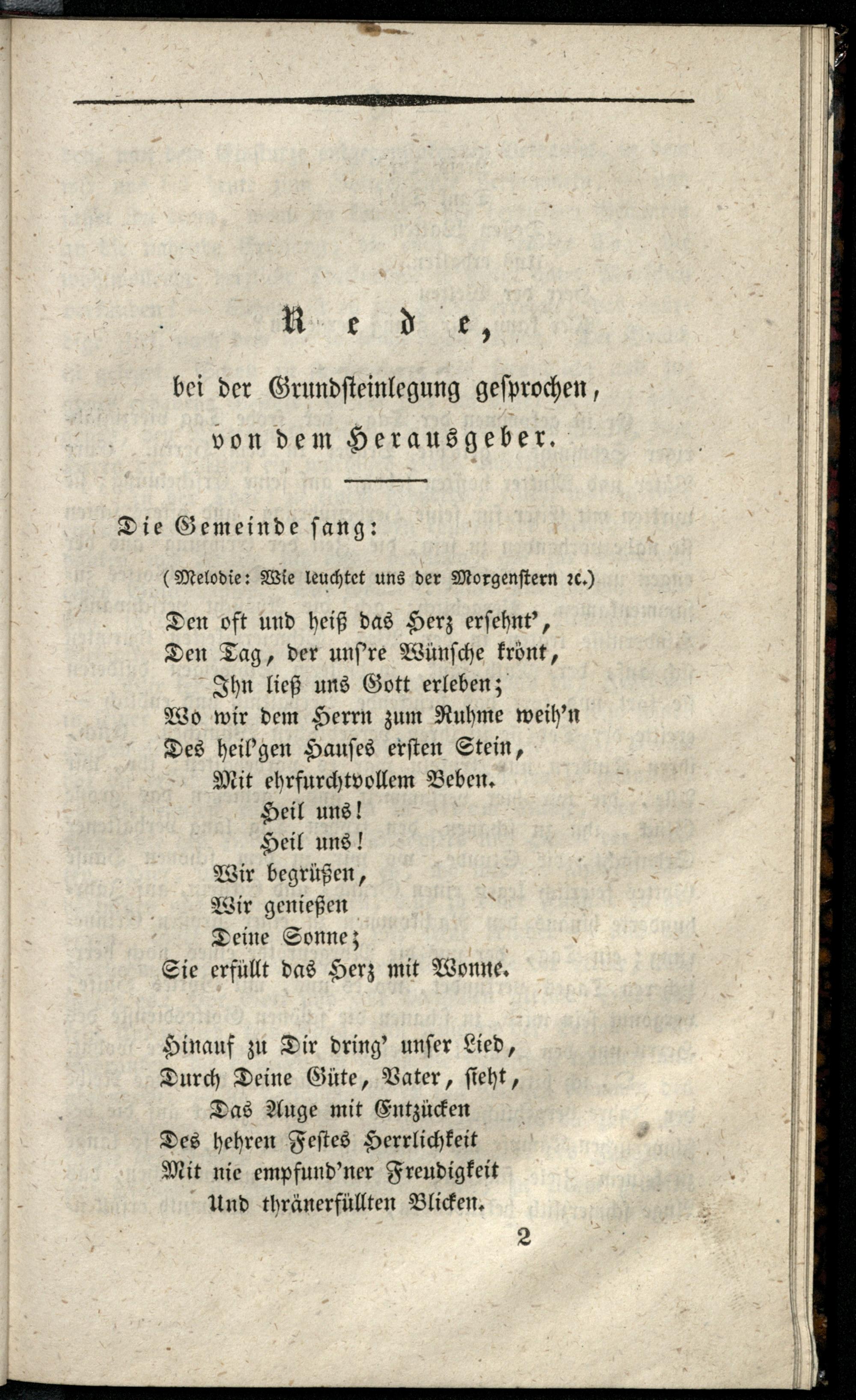 Rede, bei der Grundsteinlegung gesprochen, von dem Herausgeber.