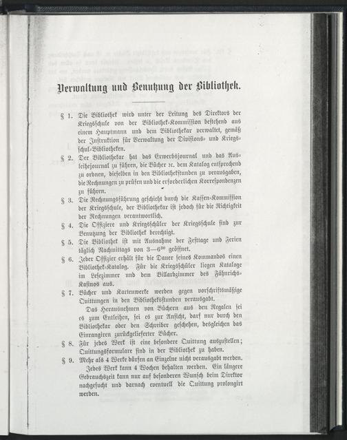 Verwaltung und Benutzung der Bibliothek.
