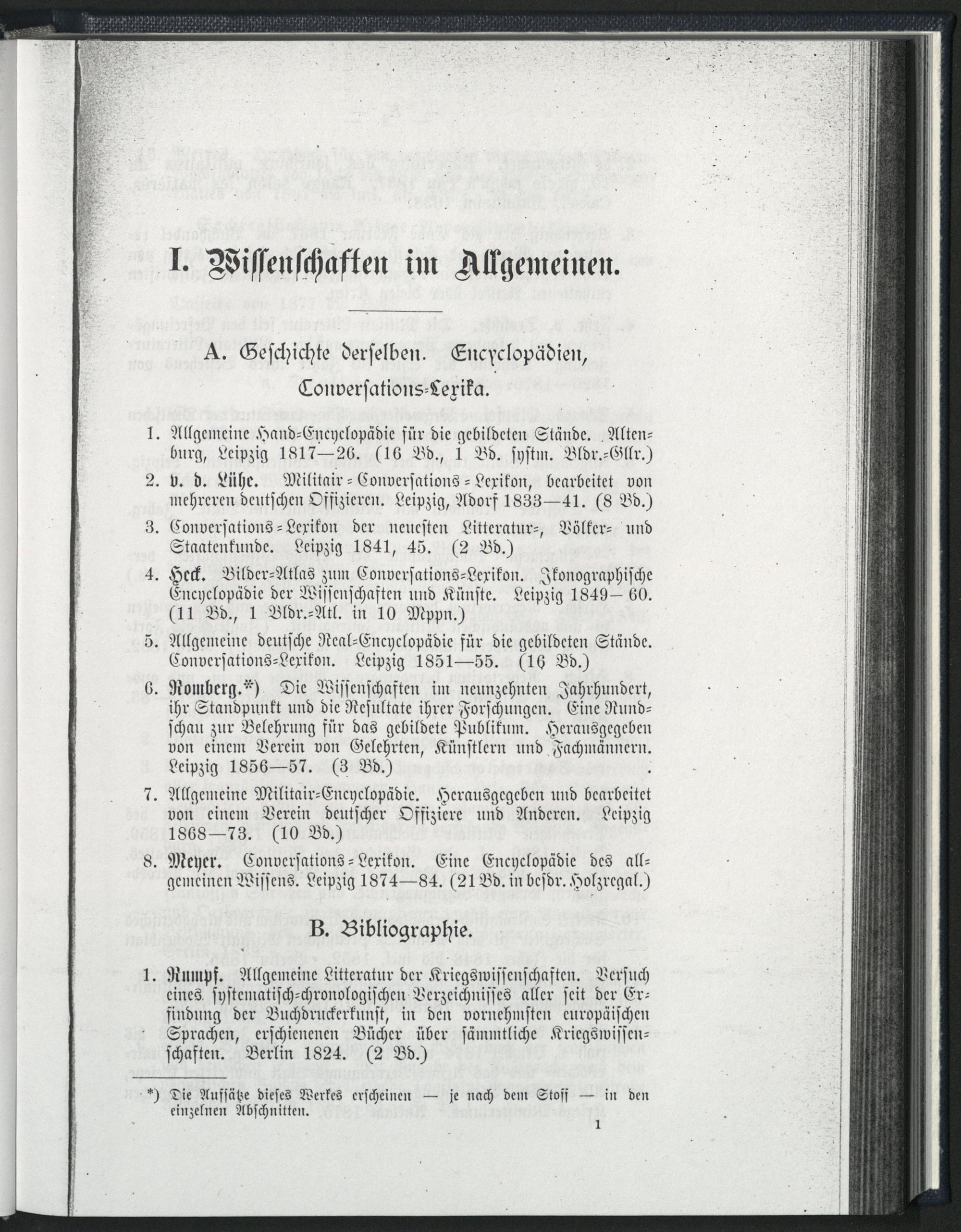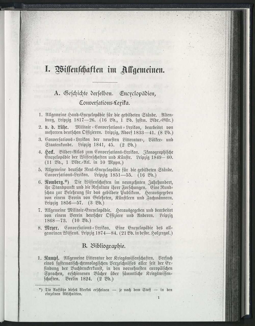 I. Wissenschaften im Allgemeinen.
