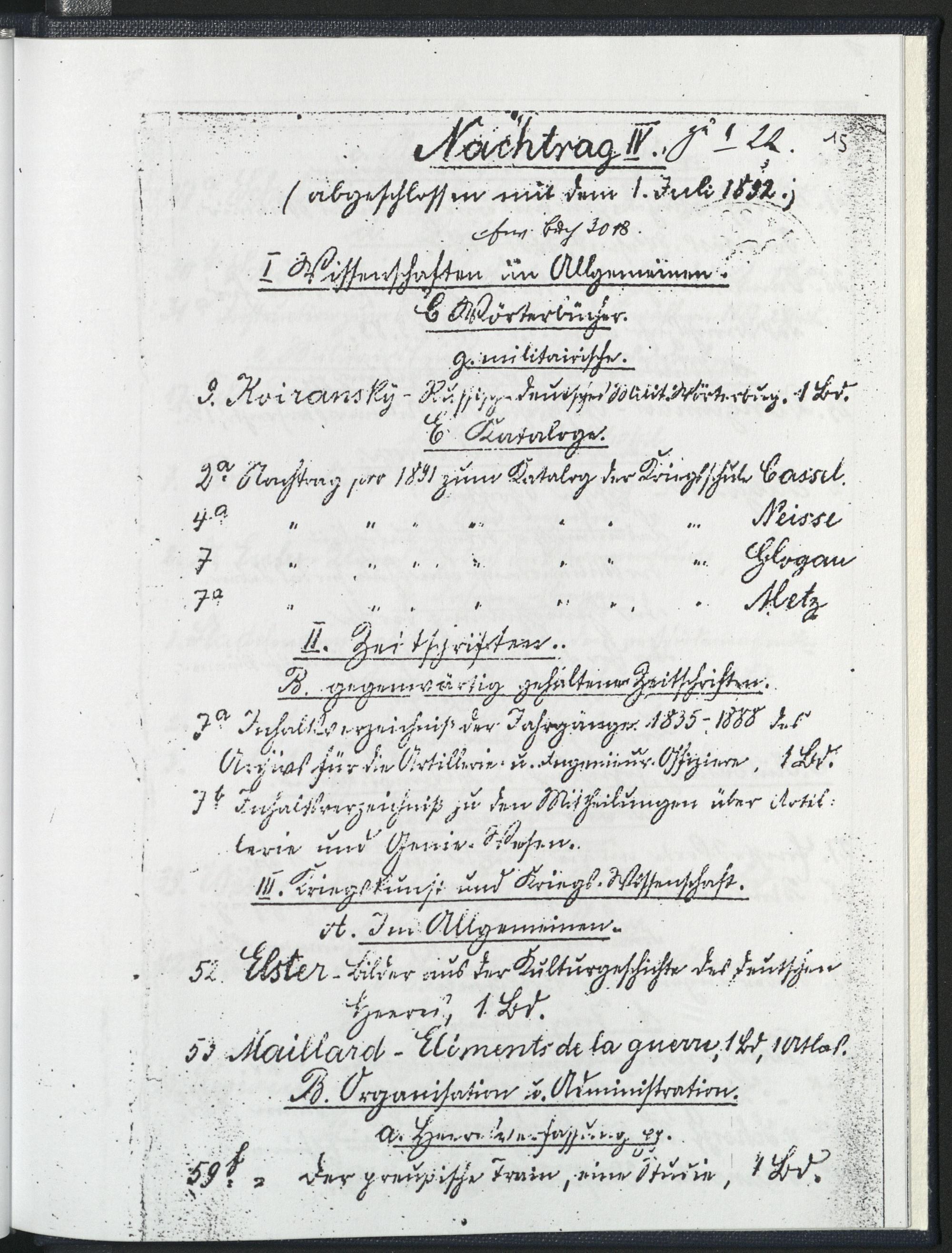 III. Kriegskunst und Kriegswissenschaften.