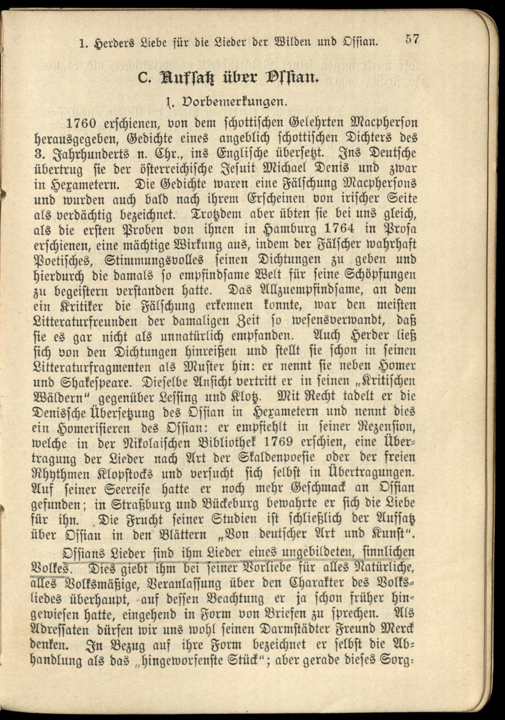 C. Aufsatz über Ossian.