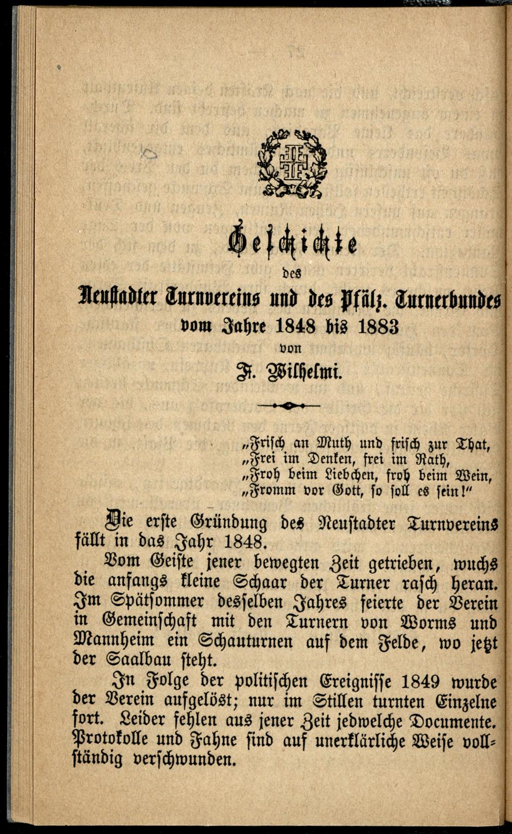 Festschrift zum II. Oberrhein. Kreis-Turnfest in Neustadt a.d. Haardt : den 5., 6., 7. und 8. August 1883