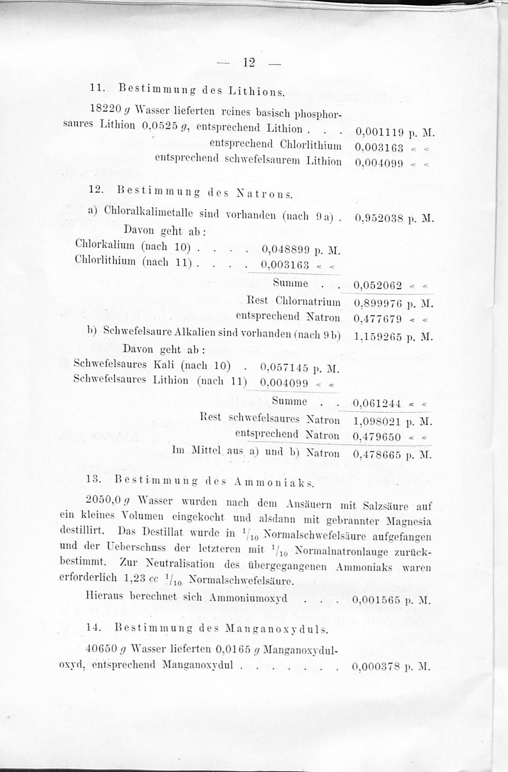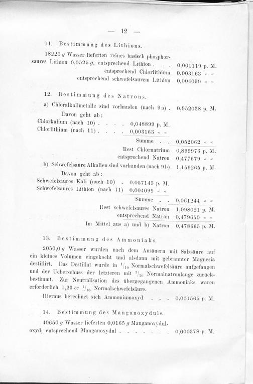 C. Charakter des Grossen Sprudels. / D. Vergleich der im chemischen Laboratorium Fresenius ausgeführten Untersuchungen des Grossen Sprudels.