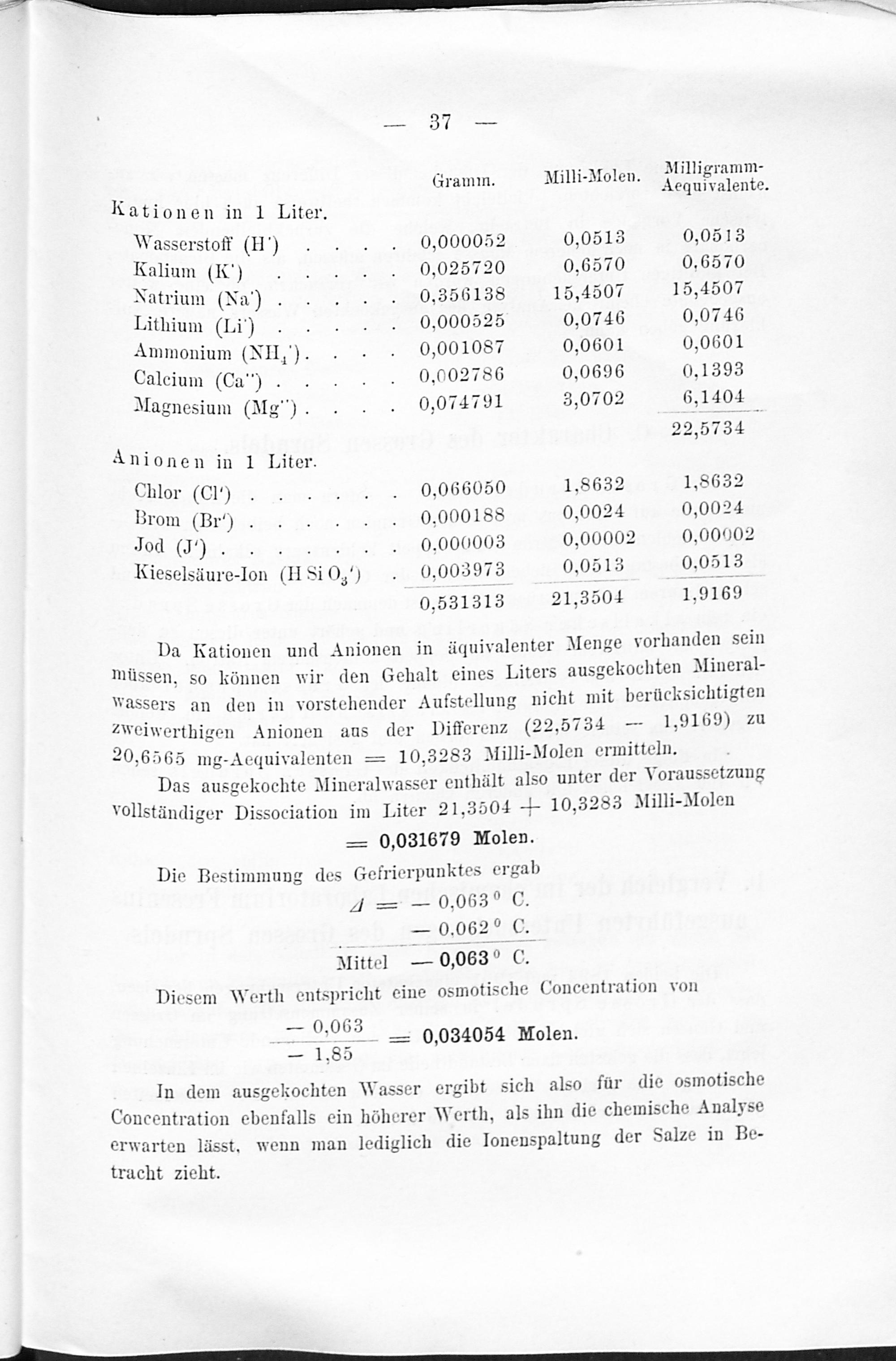 C. Charakter des Grossen Sprudels. / D. Vergleich der im chemischen Laboratorium Fresenius ausgeführten Untersuchungen des Grossen Sprudels.