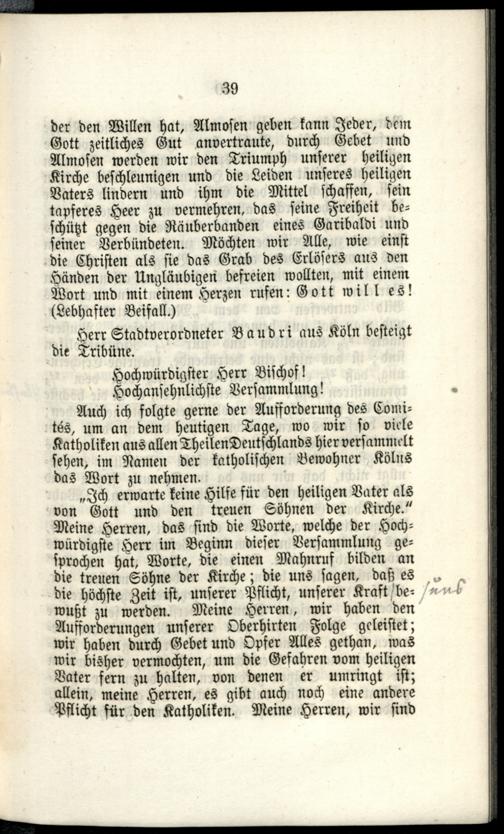 Das Recht des heiligen Vaters und der katholischen Welt : stenographischer Bericht der am 21. November zu Mainz abgehaltenen Katholiken-Versammlung