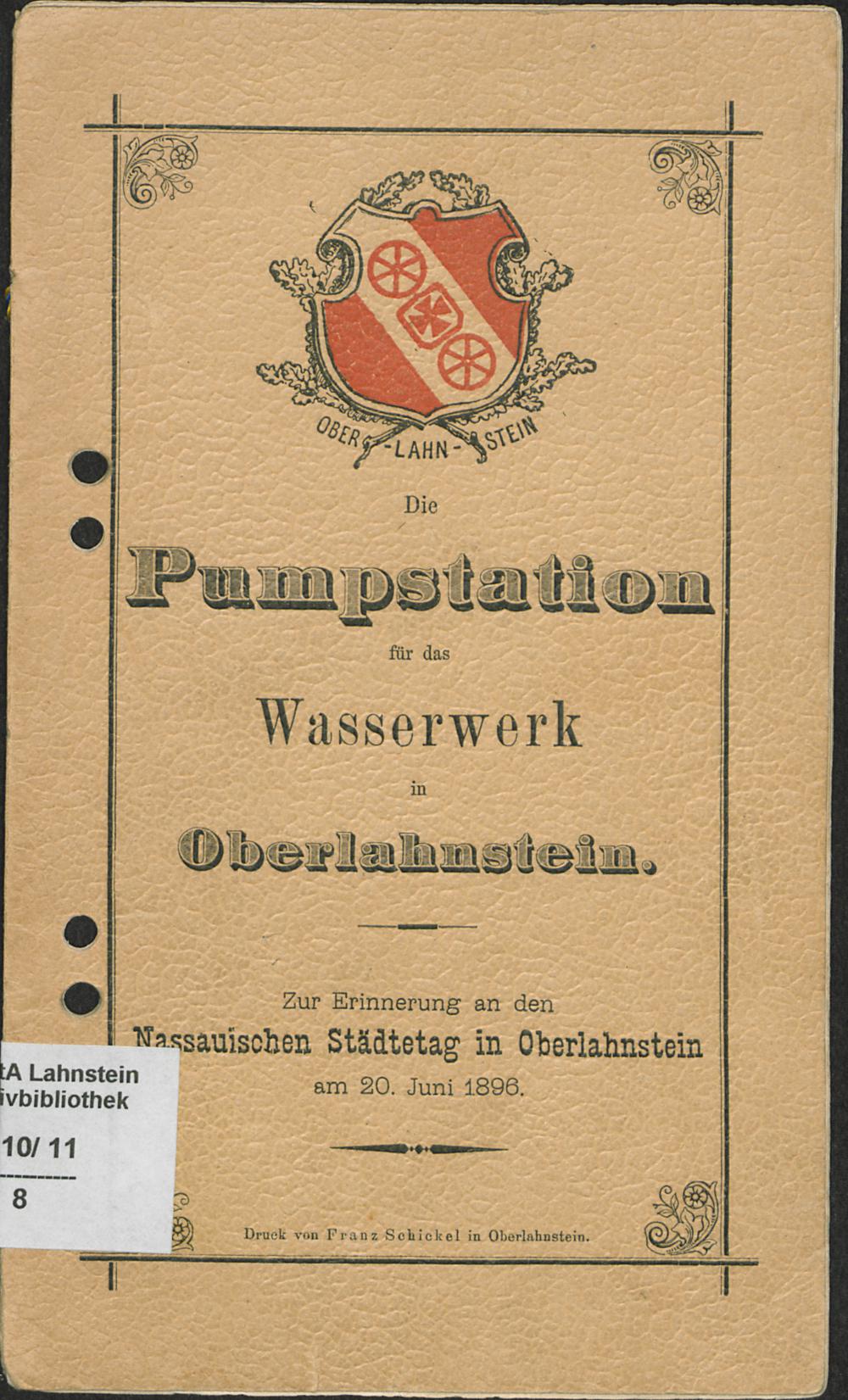 Beschreibung von Senkbrunnen und Pumpstation des Oberlahnsteiner Wasserwerks : [zur Erinnerung an den Nassauischen Städtetag in Oberlahnstein am 20. Juni 1896]