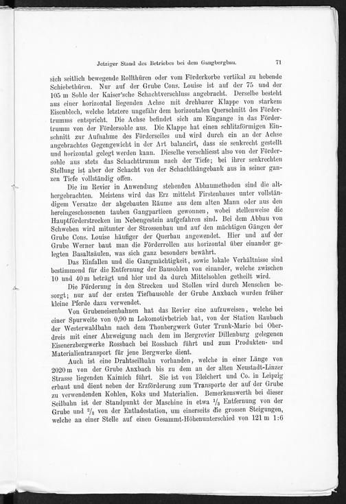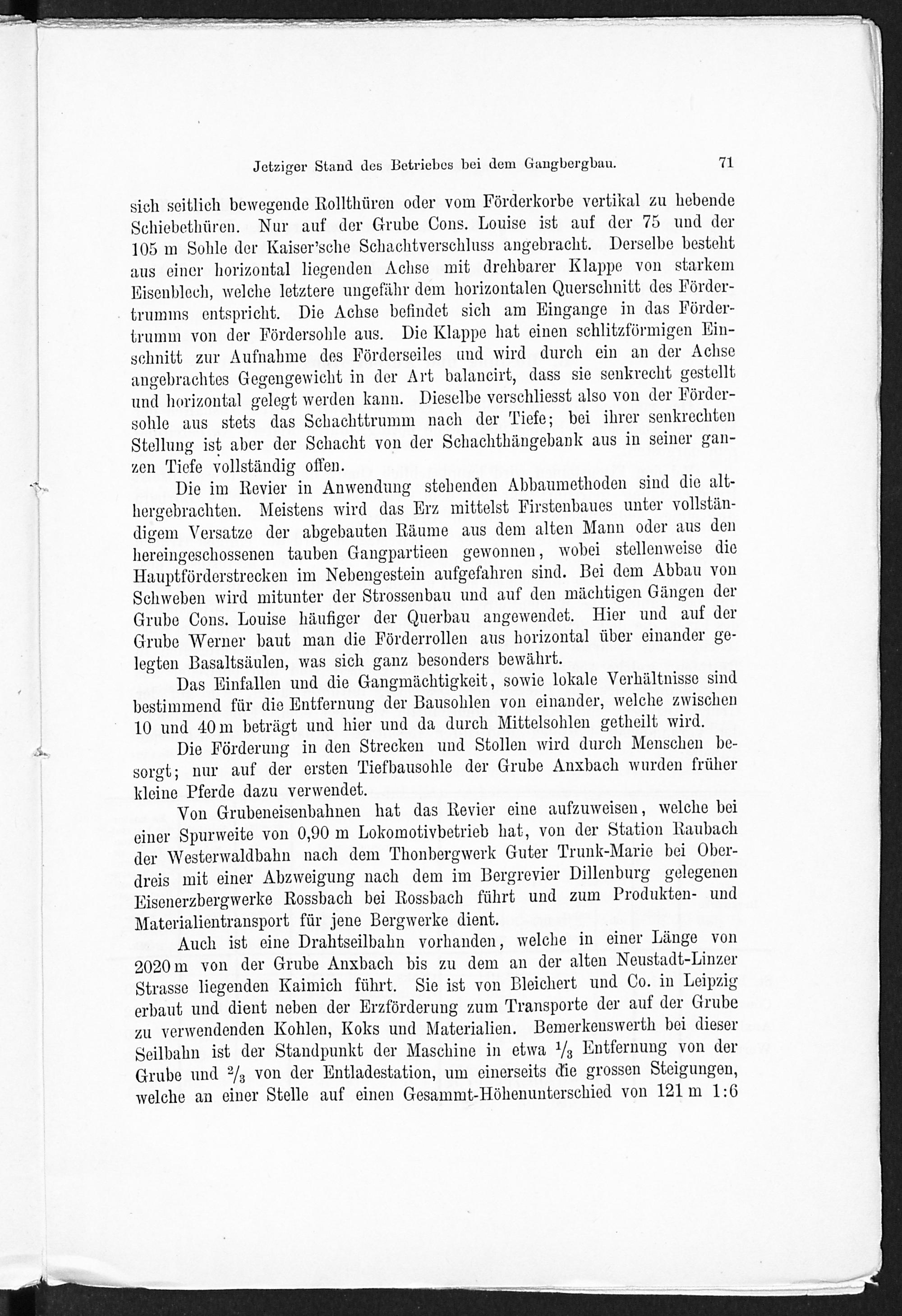 V. Jetziger Stand des Betriebes bei dem Gangbergbau.