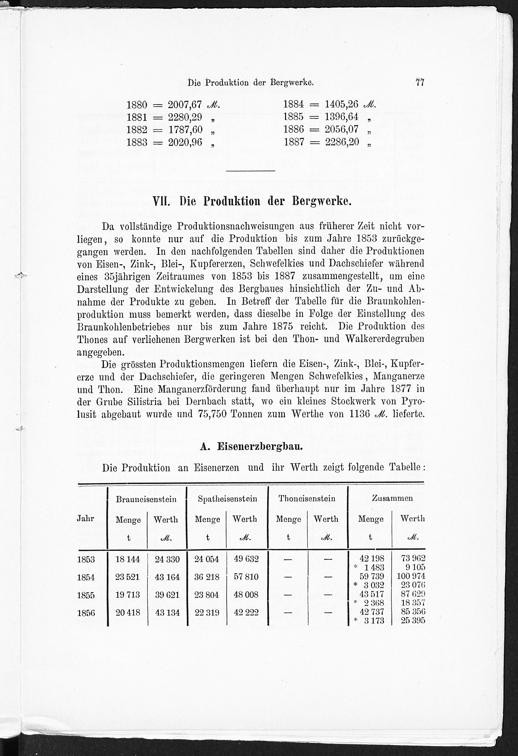 VII. Die Produktion der Bergwerke.