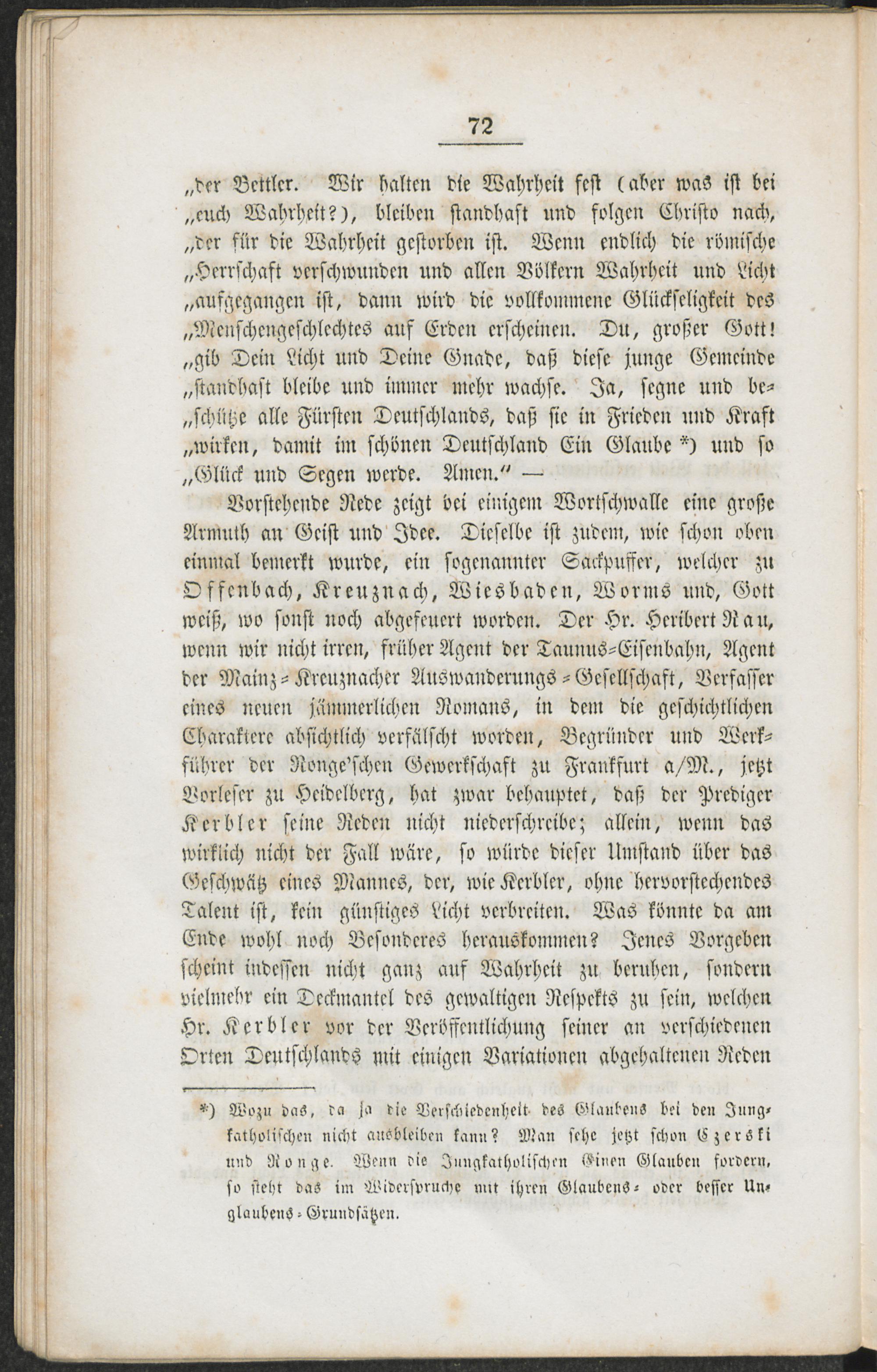 Der erste October und seine Nachkommenschaft, oder Erinnerung an das erste Auftreten des Jungkatholicismus : überhaupt und zunächst an die feierliche Einweihung der Etablissements der Ronge-Czerski'schen Schneidemühl-Compagnie zu Kreuznach, Saarbrücken, Meisenheim, Oberstein und Hottenbach