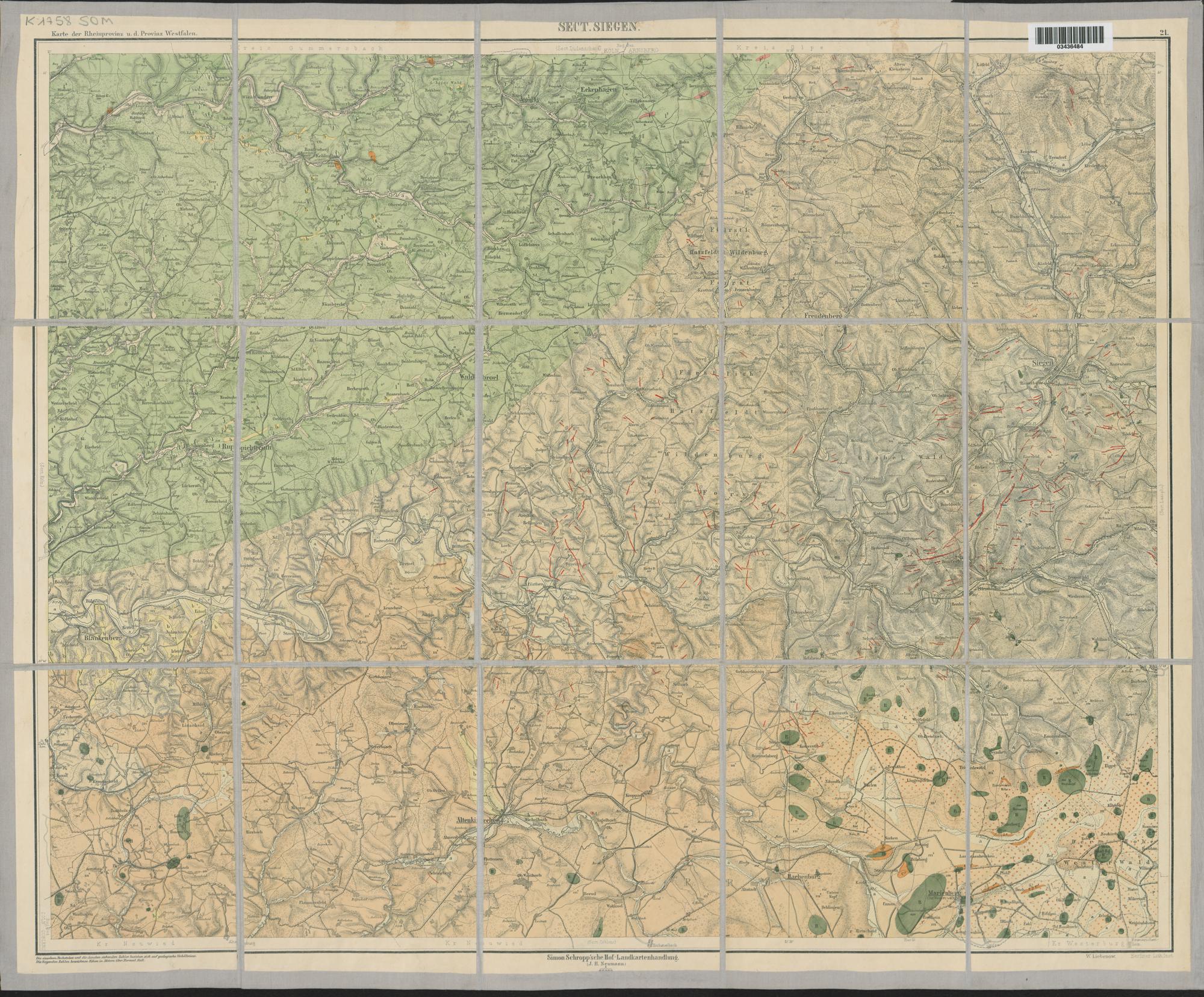 Sect. Siegen / ausgef. von H. von Dechen. Mit Benutzung der Beobachtungen der Königl. Bergbeamten und der Professoren Becks ; Girard und F. Roemer. Lith von C. Birk