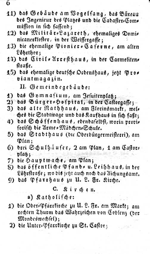 Handbuch für die Bewohner der Stadt Koblenz, die öffentlichen Plätze, Gebäude, Anstalten, Straßen, Hausnummern, Hausbesitzer so wie Verordnungen der öffentlichen Sicherheit, im Markt- und Privatverkehr, und Taxen mehrerer öffentlichen Arbeiten enthaltend