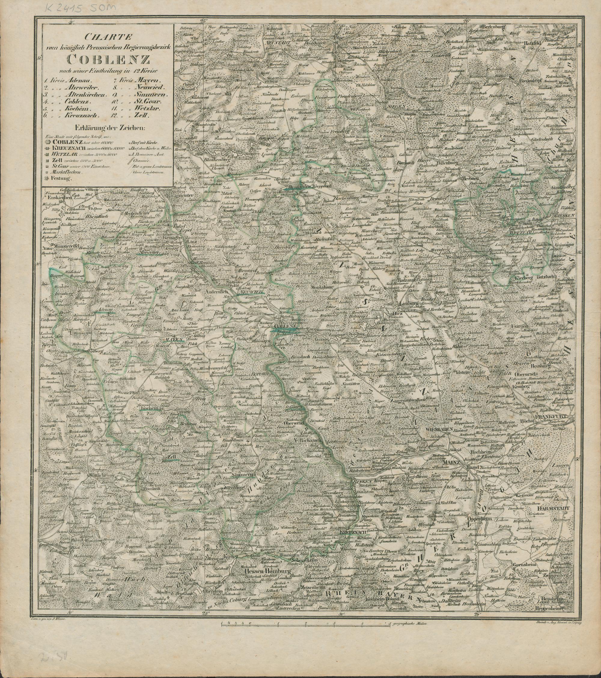 Charte vom königlich Preussischen Regierungsbezirk Coblenz : nach seiner Eintheilung in 12 Kreise / Entw. und gez. von J. Blume