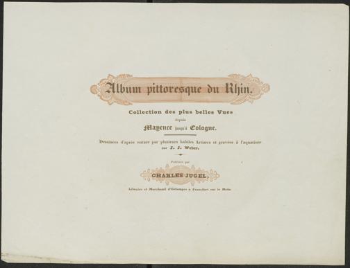Album pittoresque du Rhin : collection des plus belles vues depuis Mayence jusqu'à Cologne = Malerische Erinnerungsblaetter an den Rhein / desinées d'après nature par plusieurs habiles artistes, et gravées à l'aquatinte par J. J. Weber. Publiées par Charles Jugel