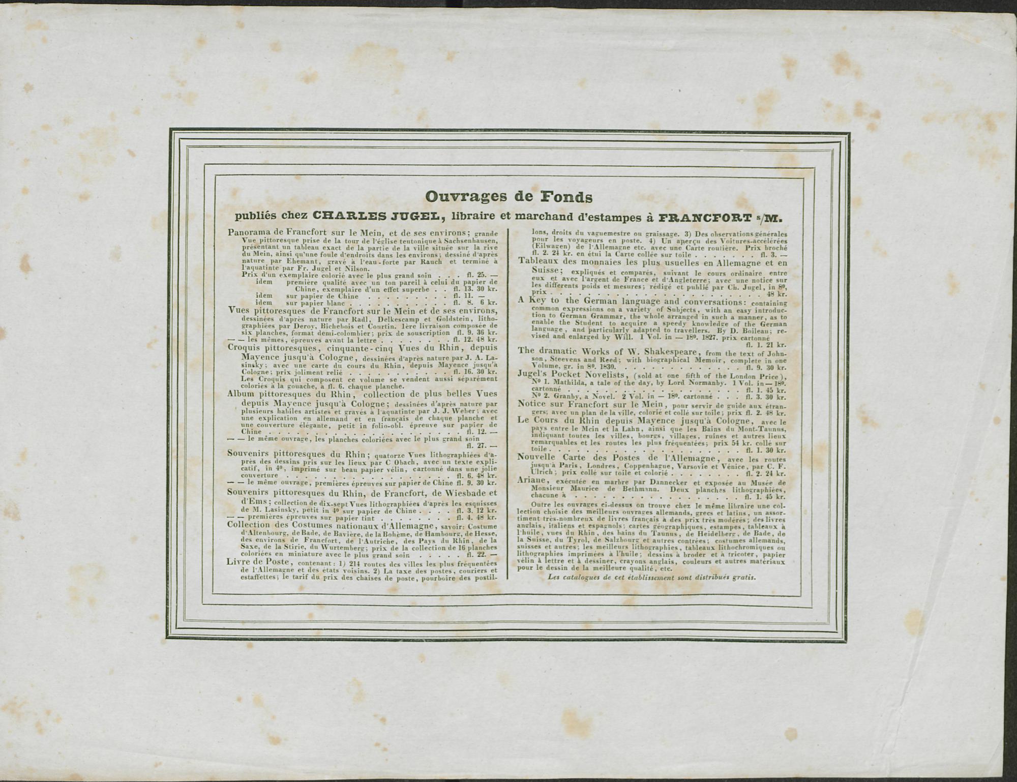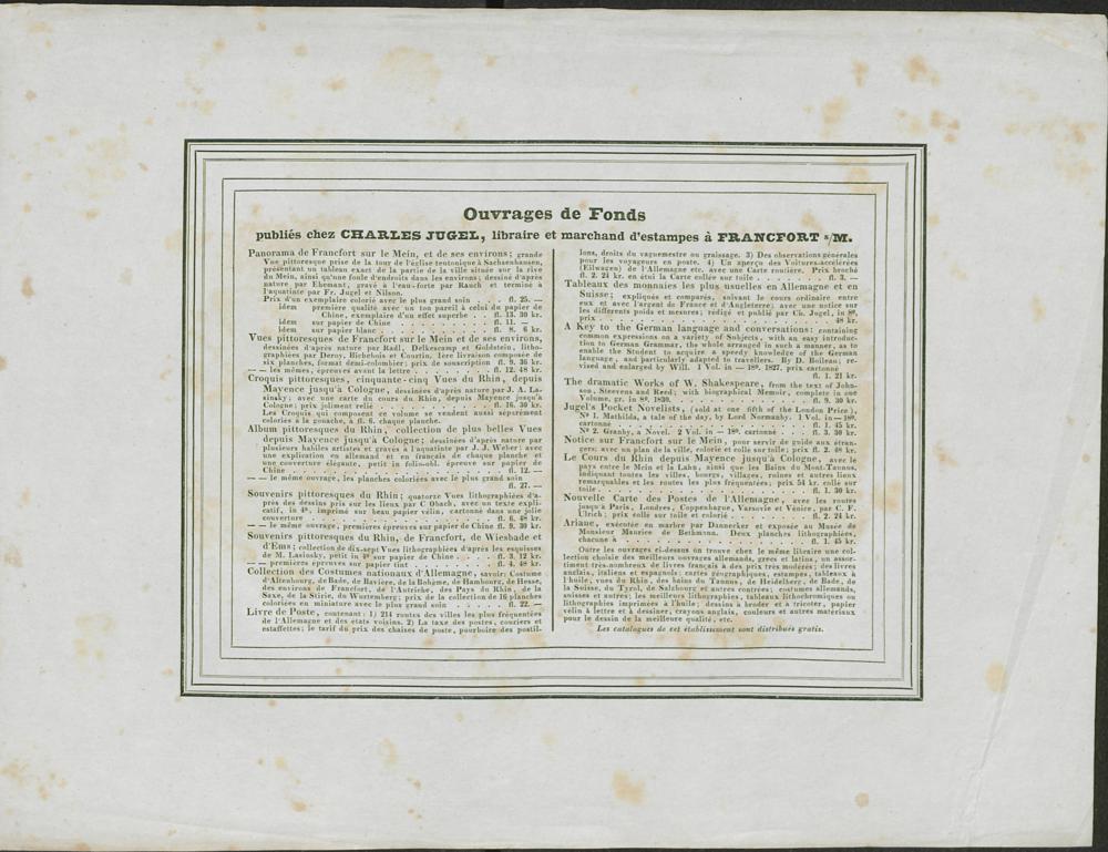 Album pittoresque du Rhin : collection des plus belles vues depuis Mayence jusqu'à Cologne = Malerische Erinnerungsblaetter an den Rhein / desinées d'après nature par plusieurs habiles artistes, et gravées à l'aquatinte par J. J. Weber. Publiées par Charles Jugel