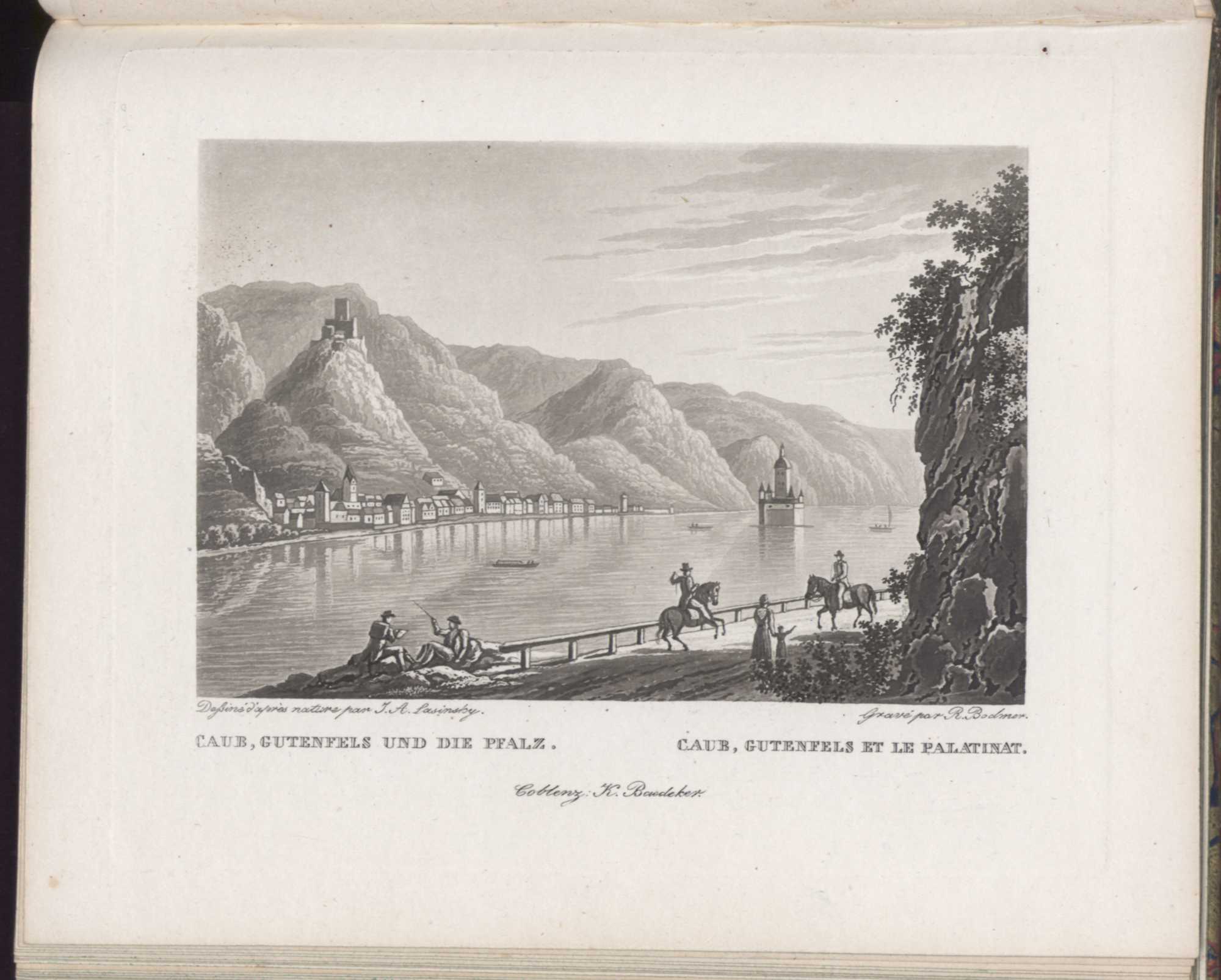 [Rhein-Ansichten] : [das Rheintal von Mainz bis Köln ; in malerischen Ansichten, besonders der Ritterburgen] / [nach der Natur gezeichnet von J. A. Lasinsky. In Aquatinta geäzt von R. Bodmer]