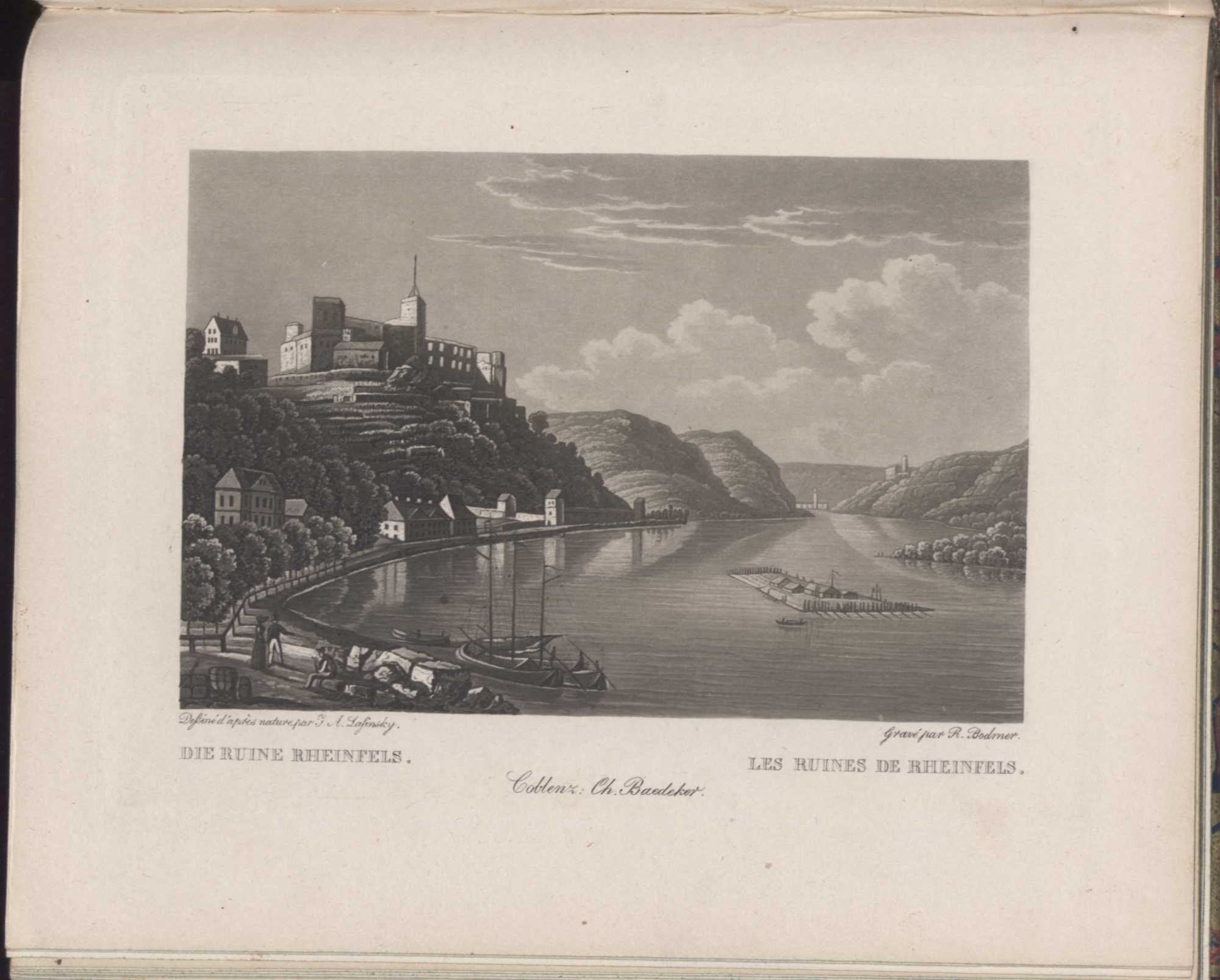 [Rhein-Ansichten] : [das Rheintal von Mainz bis Köln ; in malerischen Ansichten, besonders der Ritterburgen] / [nach der Natur gezeichnet von J. A. Lasinsky. In Aquatinta geäzt von R. Bodmer]