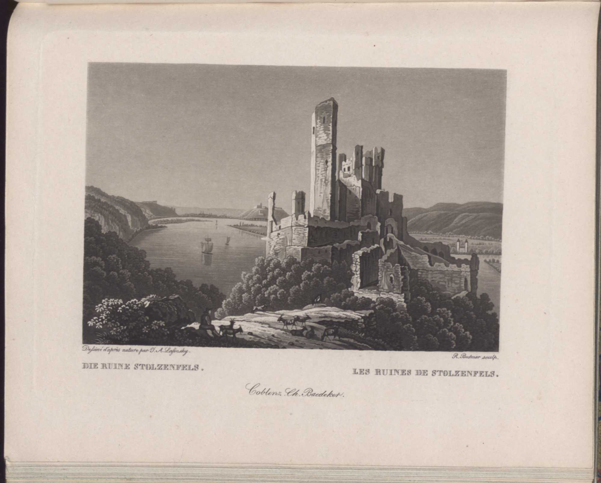 [Rhein-Ansichten] : [das Rheintal von Mainz bis Köln ; in malerischen Ansichten, besonders der Ritterburgen] / [nach der Natur gezeichnet von J. A. Lasinsky. In Aquatinta geäzt von R. Bodmer]