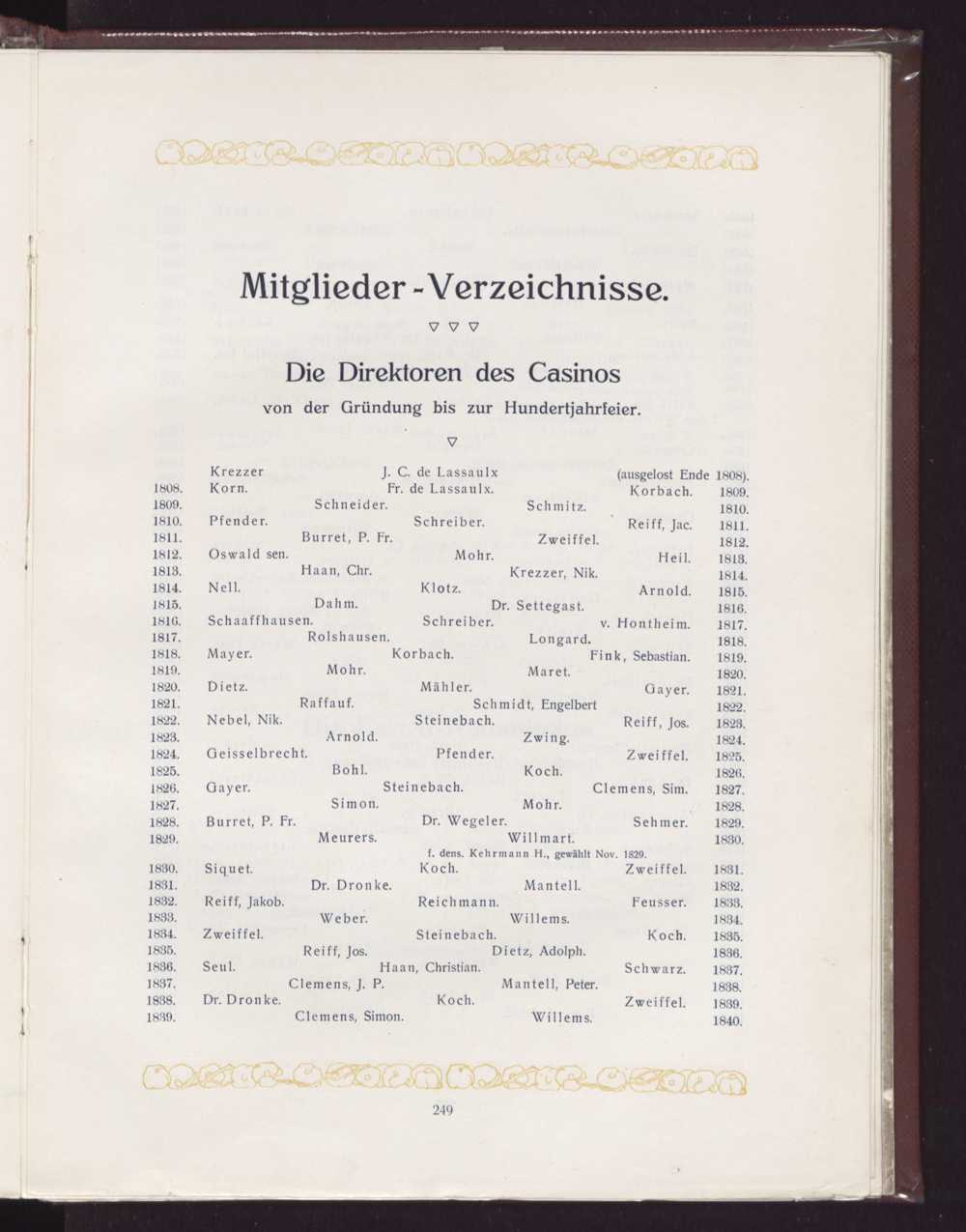 Die Direktoren des Casinos von der Gründung bis zur Hundertjahrfeier.