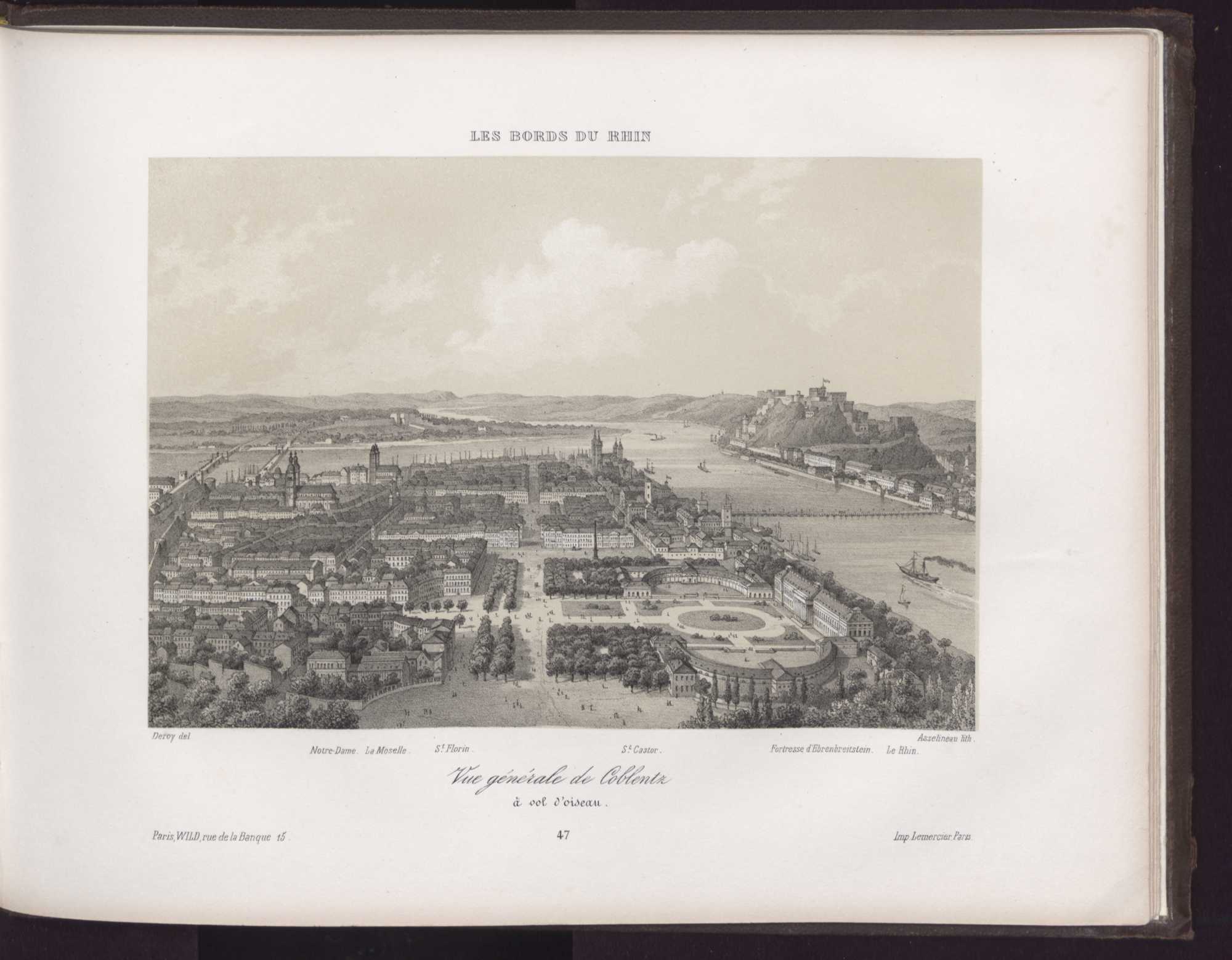 Vue générale de Coblentz à vol d'oiseau.
