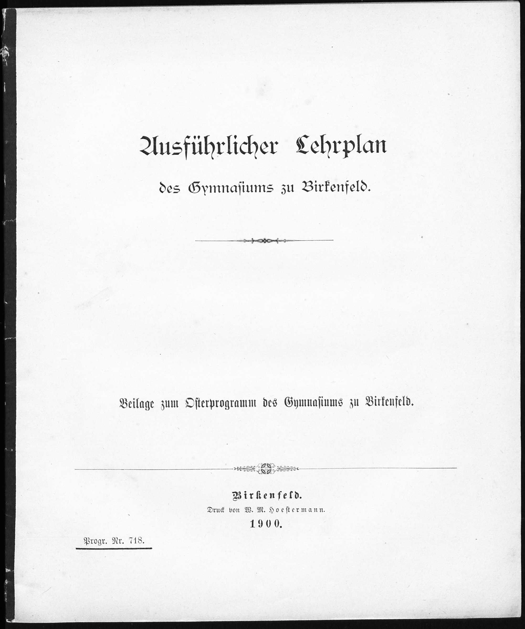 Ausführlicher Lehrplan des Gymnasiums zu Birkenfeld