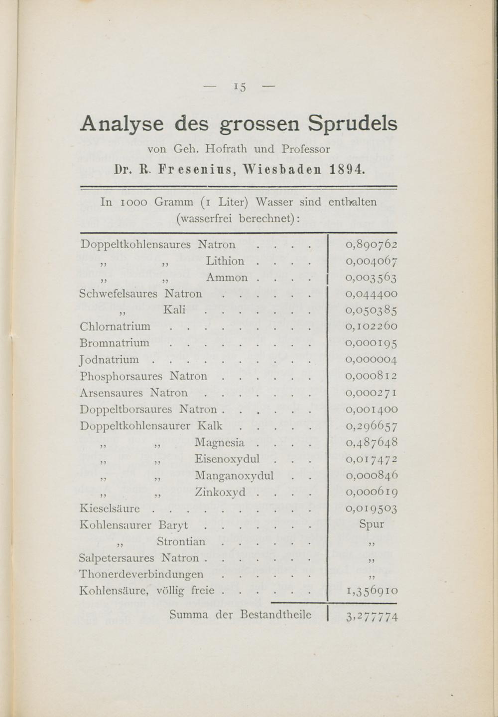 Analyse des grossen Sprudels von Geh. Holfrath und Professor Dr. R. Fresenius, Wiesbaden 1894