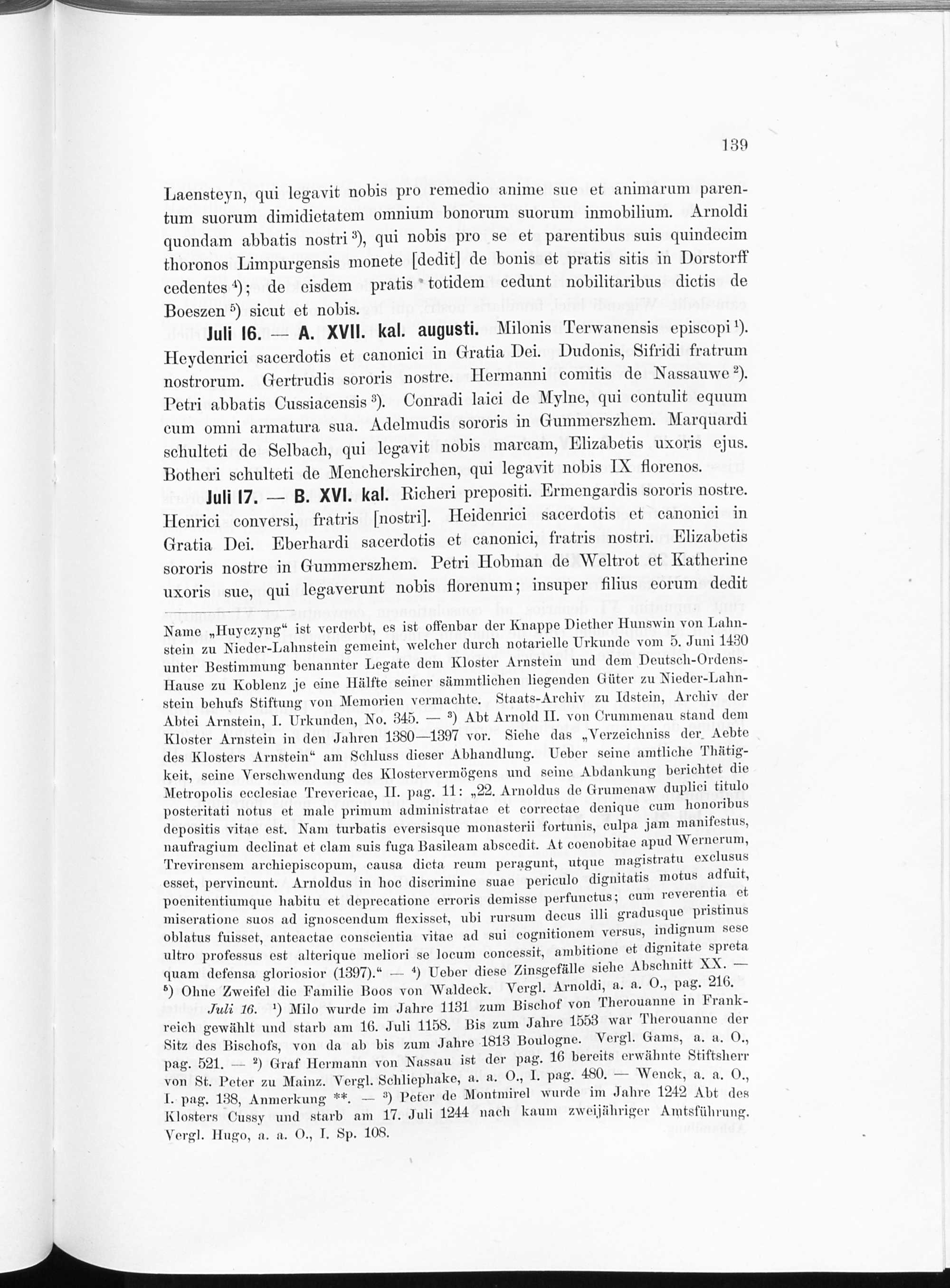 Das Necrologium der vormaligen Prämonstratenser-Abtei Arnstein an der Lahn