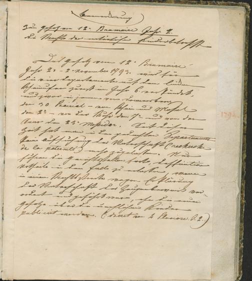 Verw,Forts,3. Auszug aus dem Register der Beschlüsse des Regierungs-Kommissars in den vier neuen Departementen des linken Rhein-Ufers ; Mainz, den 2ten Prärial, 7ten Jahres der untheilbar-vereinten Republik Franken-Republik : Fortsetzung der Verwaltungs-Ordnung